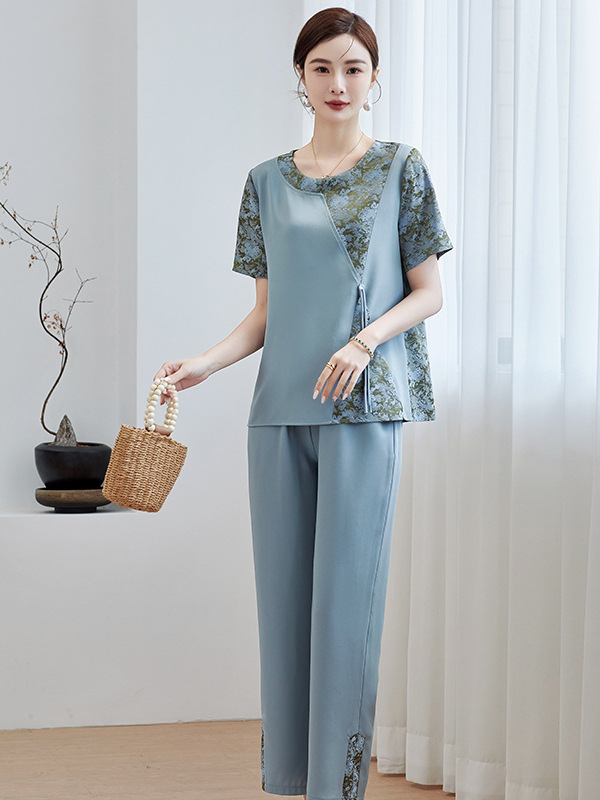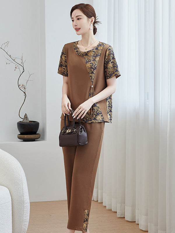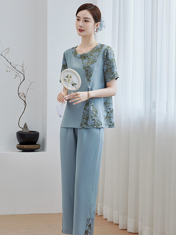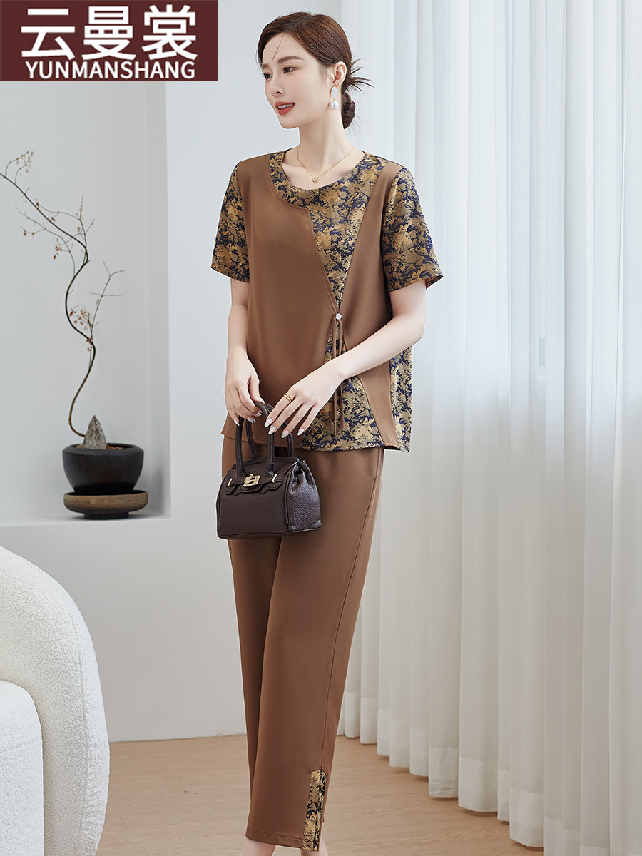 | nameOriginal | Mom Summer Dress suit 2024 New Western Style Middle-aged Women's Short-sleeved T-shirt Two-piece Set Chinese Style Middle-aged Top |