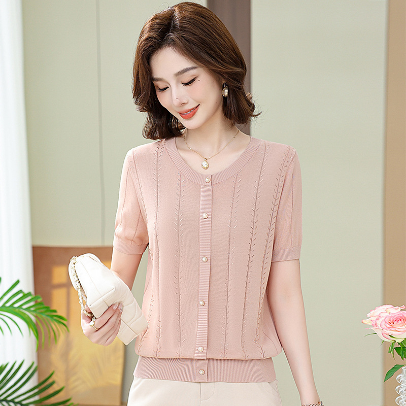 | nameOriginal | Mom Summer Ice Silk Knitted Short-sleeved T-shirt 2024 New Solid Color All-match Top for Middle-aged and Elderly Women Mother's Day |