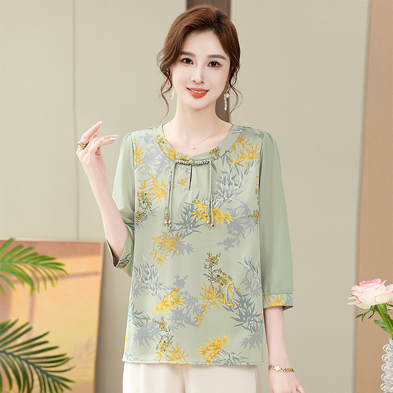 | nameOriginal | Mom Summer New Chinese Style National Style T-shirt New Chiffon Shirt for Middle-aged and Elderly Women's Short Sleeve Top |