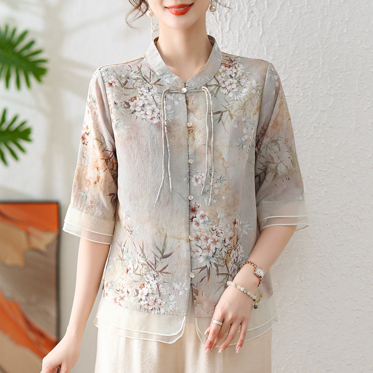 | nameOriginal | Mom Summer New Chinese Style Top Women's Middle-aged and Elderly Women's Clothing 2024 Spring National Style Shirt Grandma Chiffon Shirt Summer |