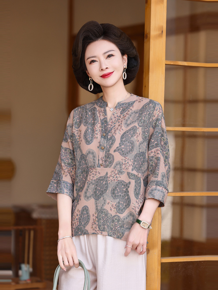 | nameOriginal | Mom Summer Short-sleeved T-shirt Women's 2024 Summer New Middle-aged and Elderly Women's Western Style Top Elegant Chiffon Shirt for Women |