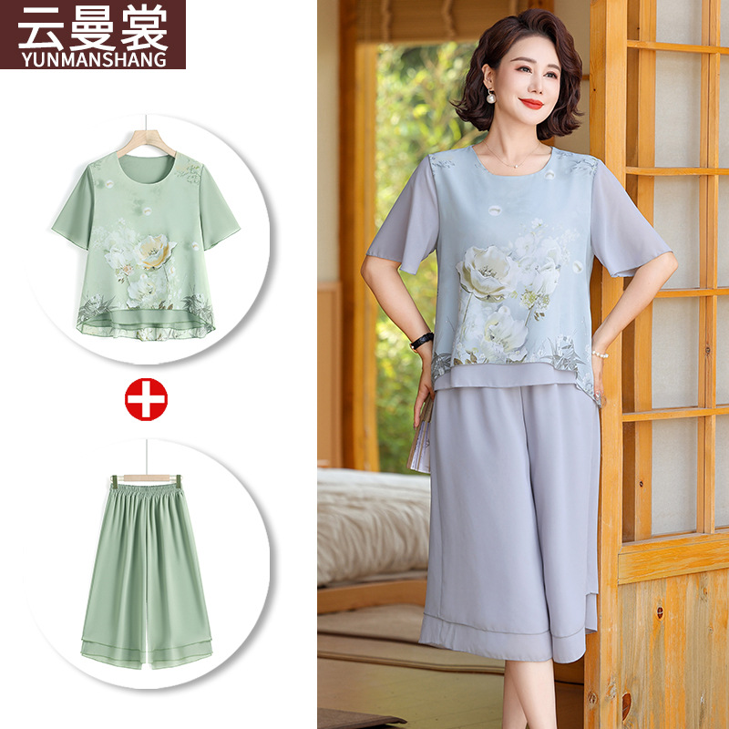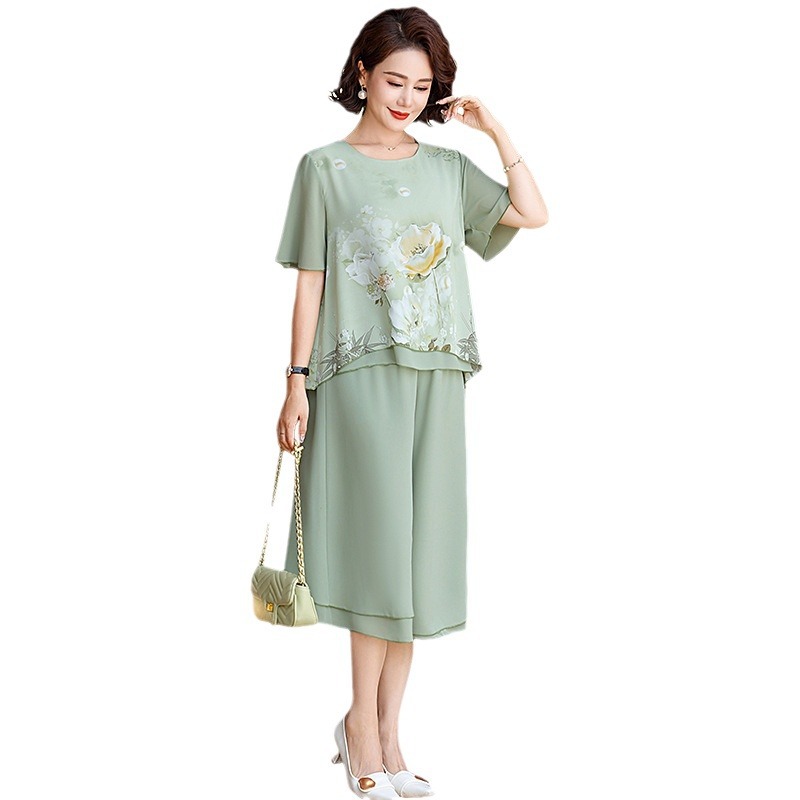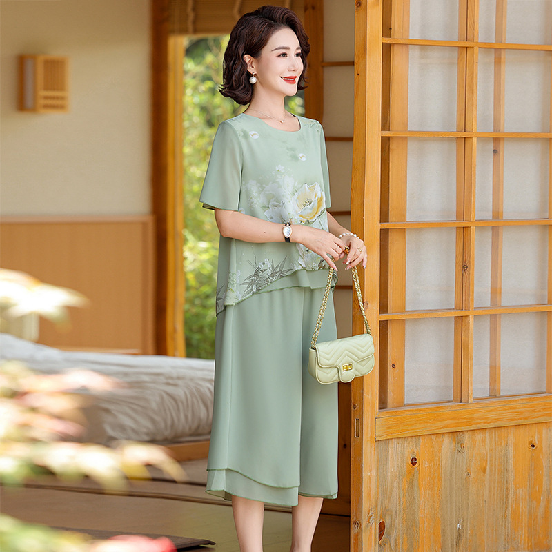 | nameOriginal | Mom Summer suit New Chinese suit Loose T-shirt National Style Chiffon Shirt Short Sleeve Top Wide Leg Pants Two-piece Set |