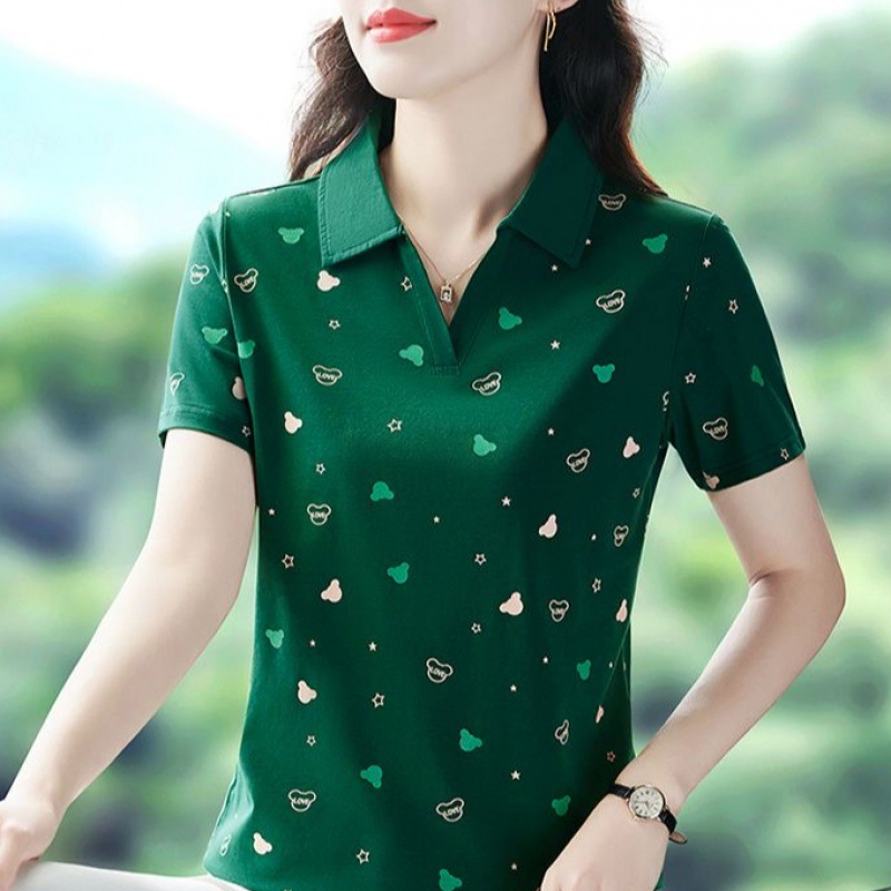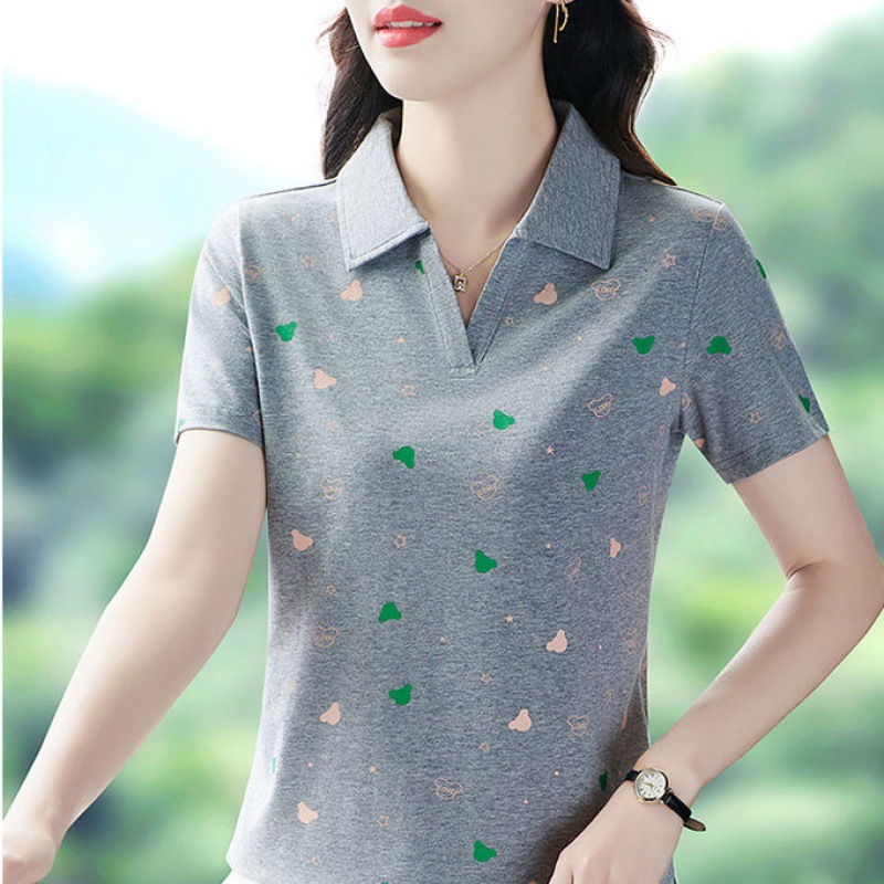 | nameOriginal | Mom summer T-shirt short sleeve women 2024 new lapel polo collar T-shirt sports fashion foreign style top |