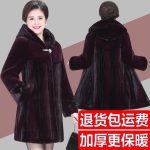 Mom winter fur coat Women’s Mid-length hooded thickened plus size mink cotton top middle-aged and elderly mink coat