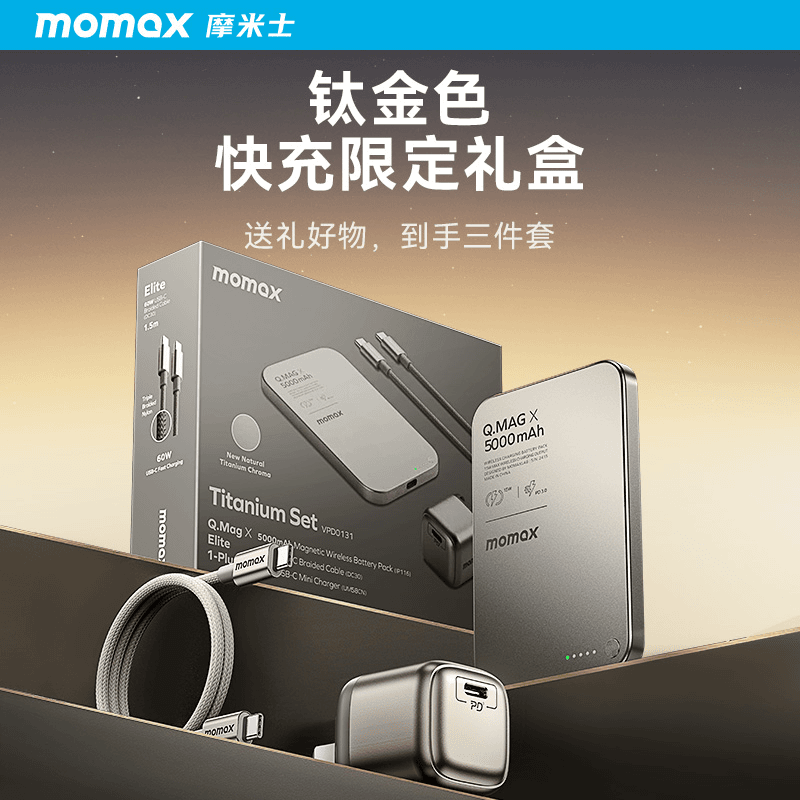 MOMAX/Momis ultra-thin magnetic power bank set mobile power wireless gallium nitride fast charging head data cable
