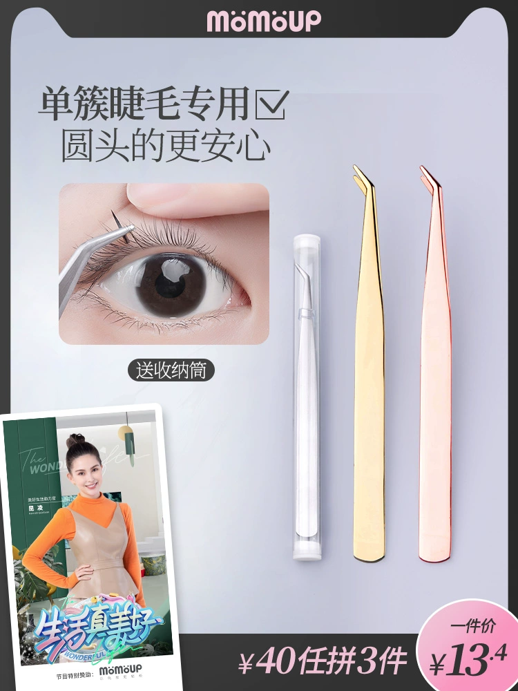 momoup false eyelashes eyelash tweezers beauty eyelash clip elbow glue grafting special fairy gold feather clip stainless steel