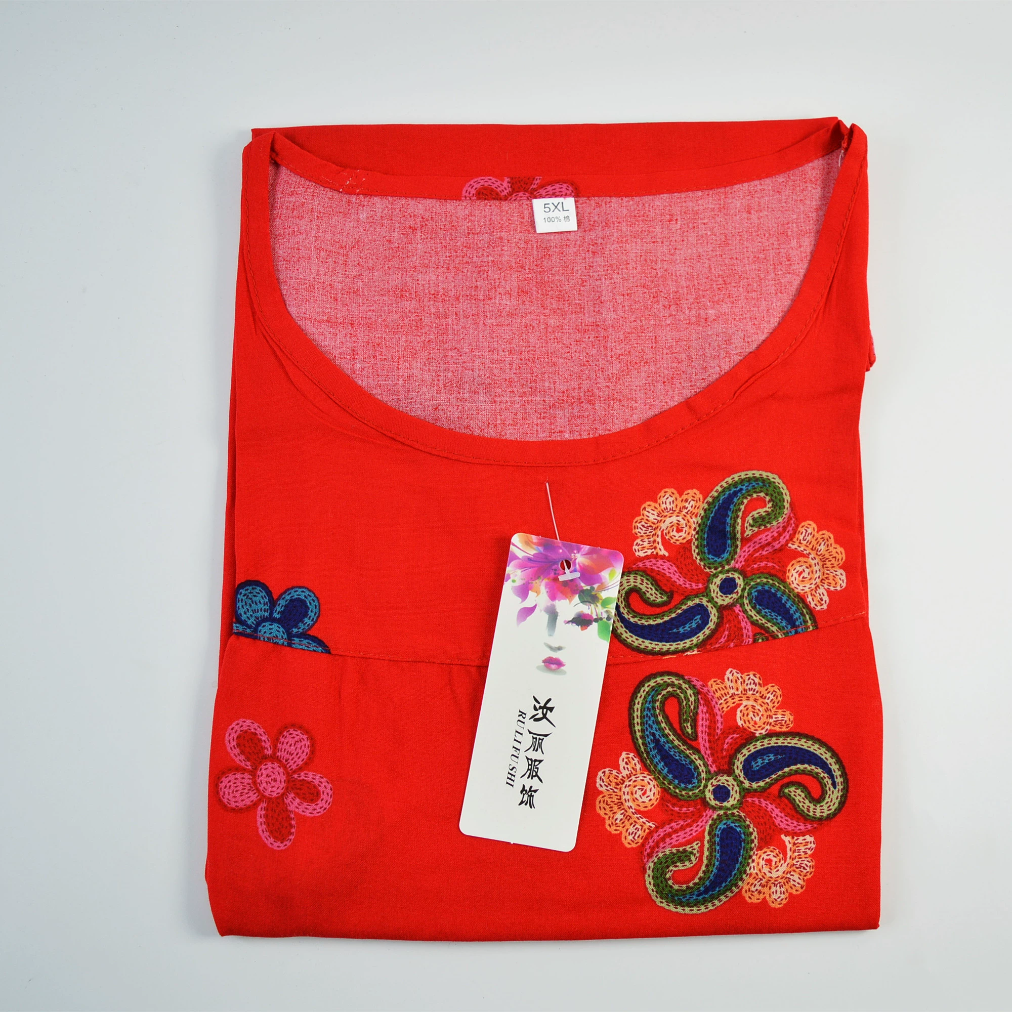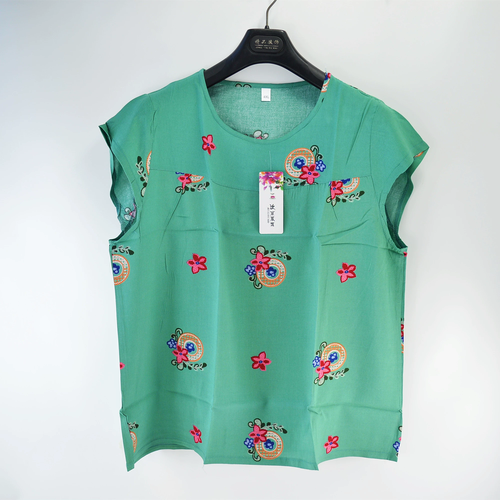 Mom’s large size cotton silk vest for middle-aged and elderly women summer thin artificial cotton top old lady horseshoe sleeve floral T-shirt