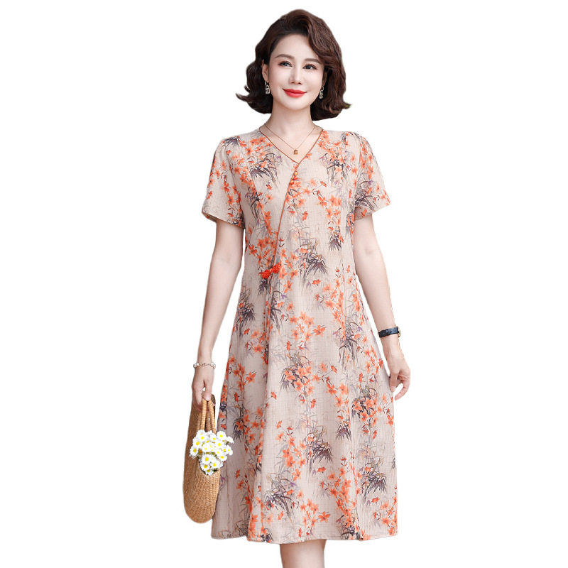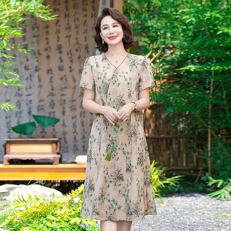 | nameOriginal | Mom's New Chinese Style dress Western Style Improved Cheongsam 2024 New Middle-aged and Elderly Women's Summer Short-sleeved Elegant Skirt |