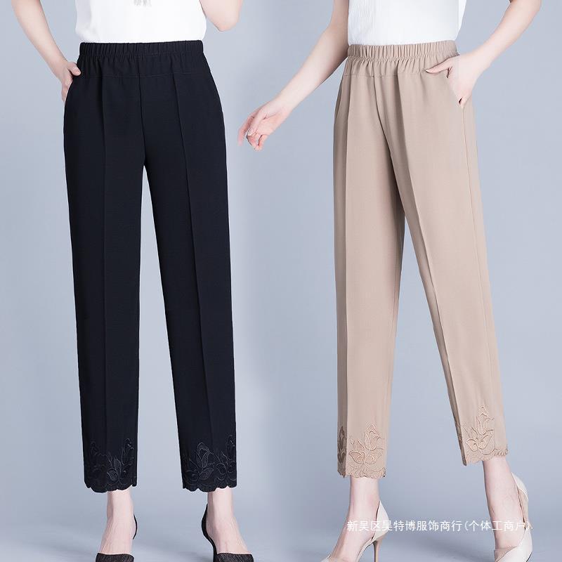 | nameOriginal | Mom's Pants Summer Thin Chiffon Cropped Pants Middle-aged and Elderly Women's Pants Grandma's Loose Straight Pants with Loose Waist |