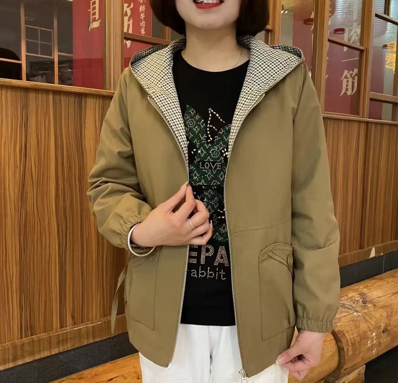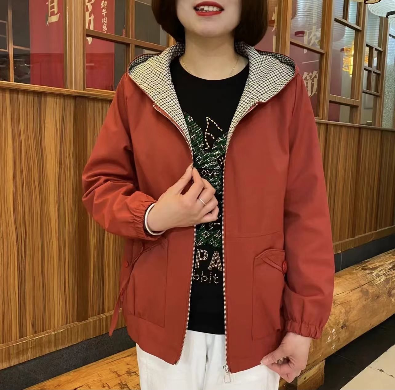 | nameOriginal | Mom's Spring and Autumn Coat Hooded Short Coat 2024 New Middle-aged Women's plus size Loose Foreign Style Jacket |