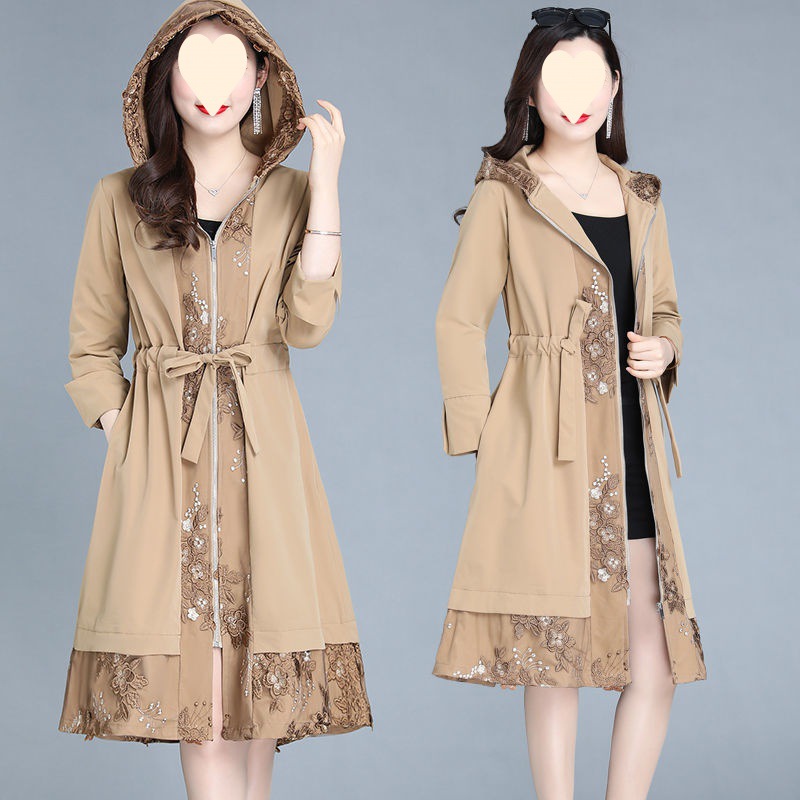 Mom’s Spring and Autumn Elegant Windbreaker Women’s Mid-length Spring New Arrival Middle-aged Women’s plus size Coat Over the Knee
