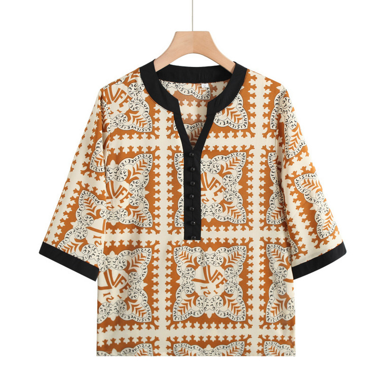| nameOriginal | Mom's Summer Short-sleeved T-shirt Top Middle-aged Women's Chiffon Western Style Small Shirt Middle-aged and Old Summer Seven-sleeved Top |