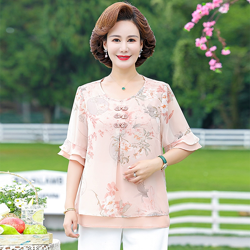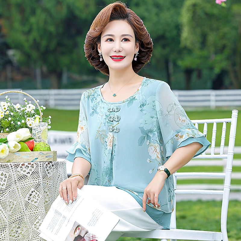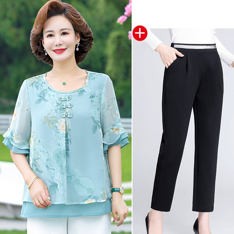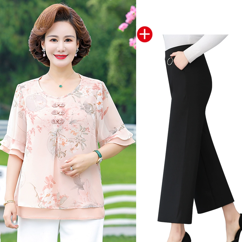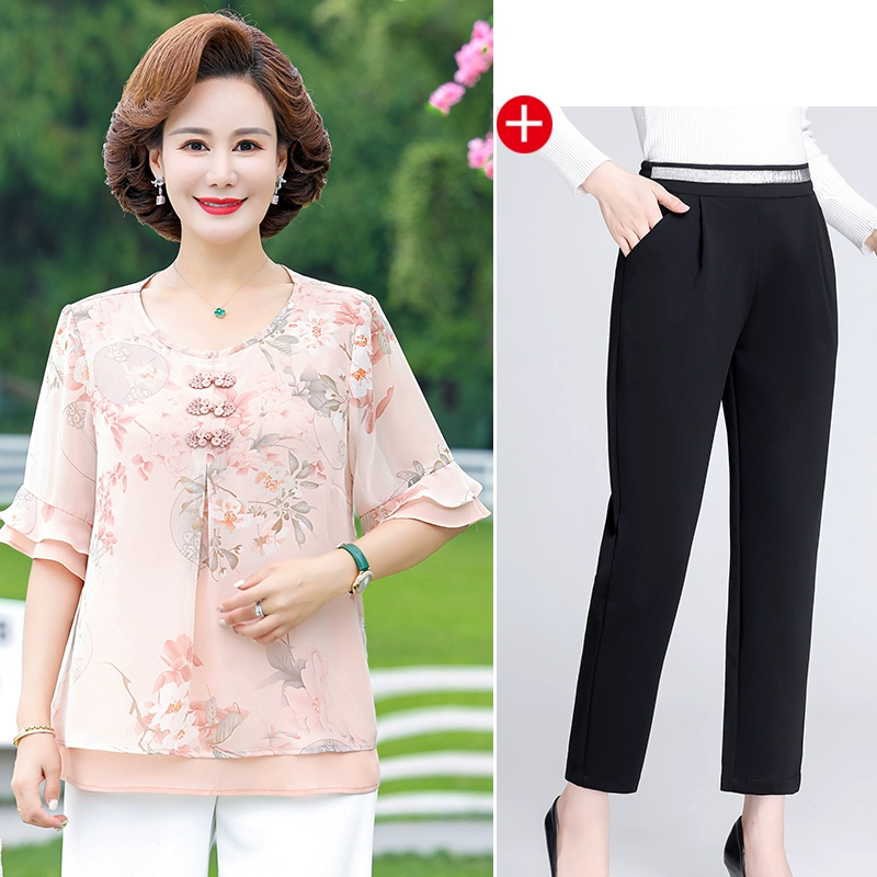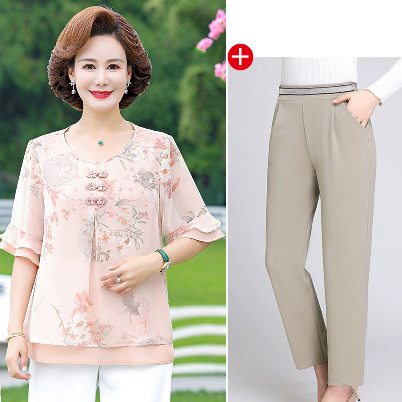 Mom's summer style suit 2024 new middle-aged holiday two-piece Mother's Day clothes middle-aged and elderly women's two-piece set