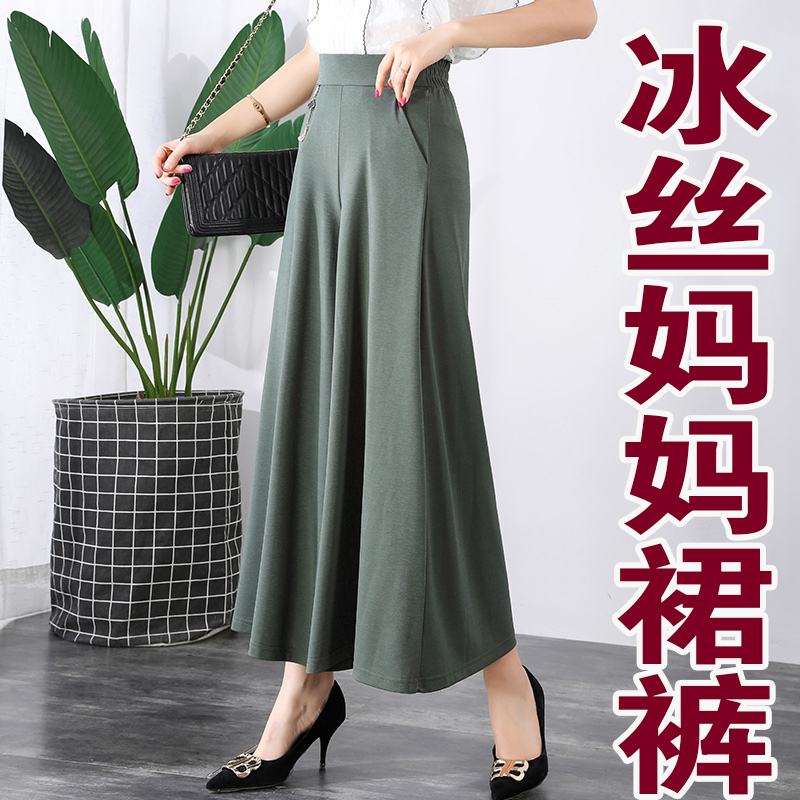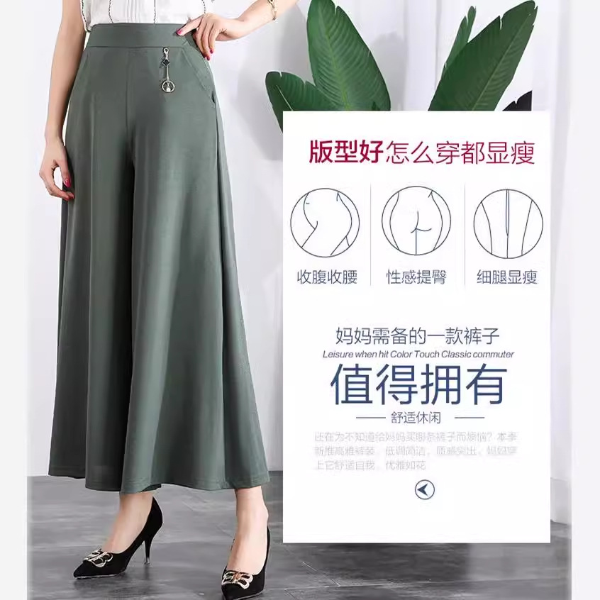 | nameOriginal | Mom's Summer Thin Wide-leg Culottes Women's High Waist Loose Middle-aged and Elderly Women's plus size Casual Ice Silk Pants |