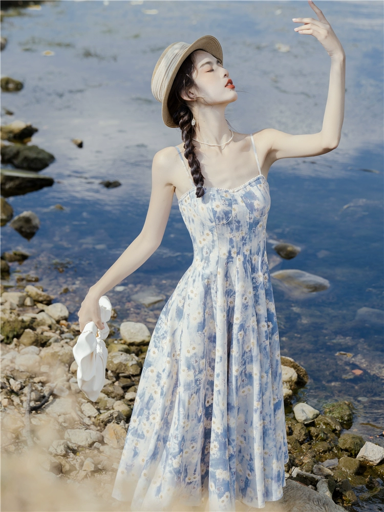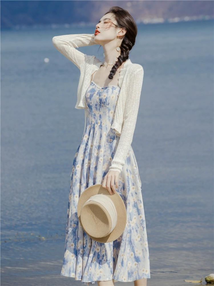 Monet’s unique and beautiful retro suspender cardigan oil painting skirt