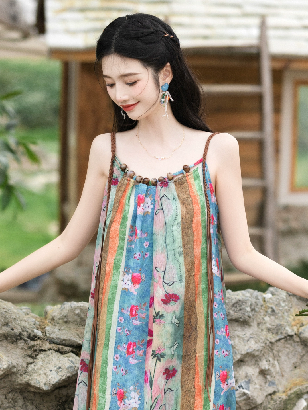| nameOriginal | Monet's elegant spring and summer suspender ethnic style oil painting skirt |