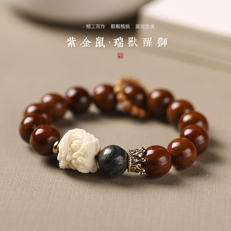 | nameOriginal | Money Purple Golden Mouse Wen Play Bracelet Light Beads Bodhi Zi Cinnabar Carved Auspicious Lion Beads Men's Buddha Beads Bracelet |