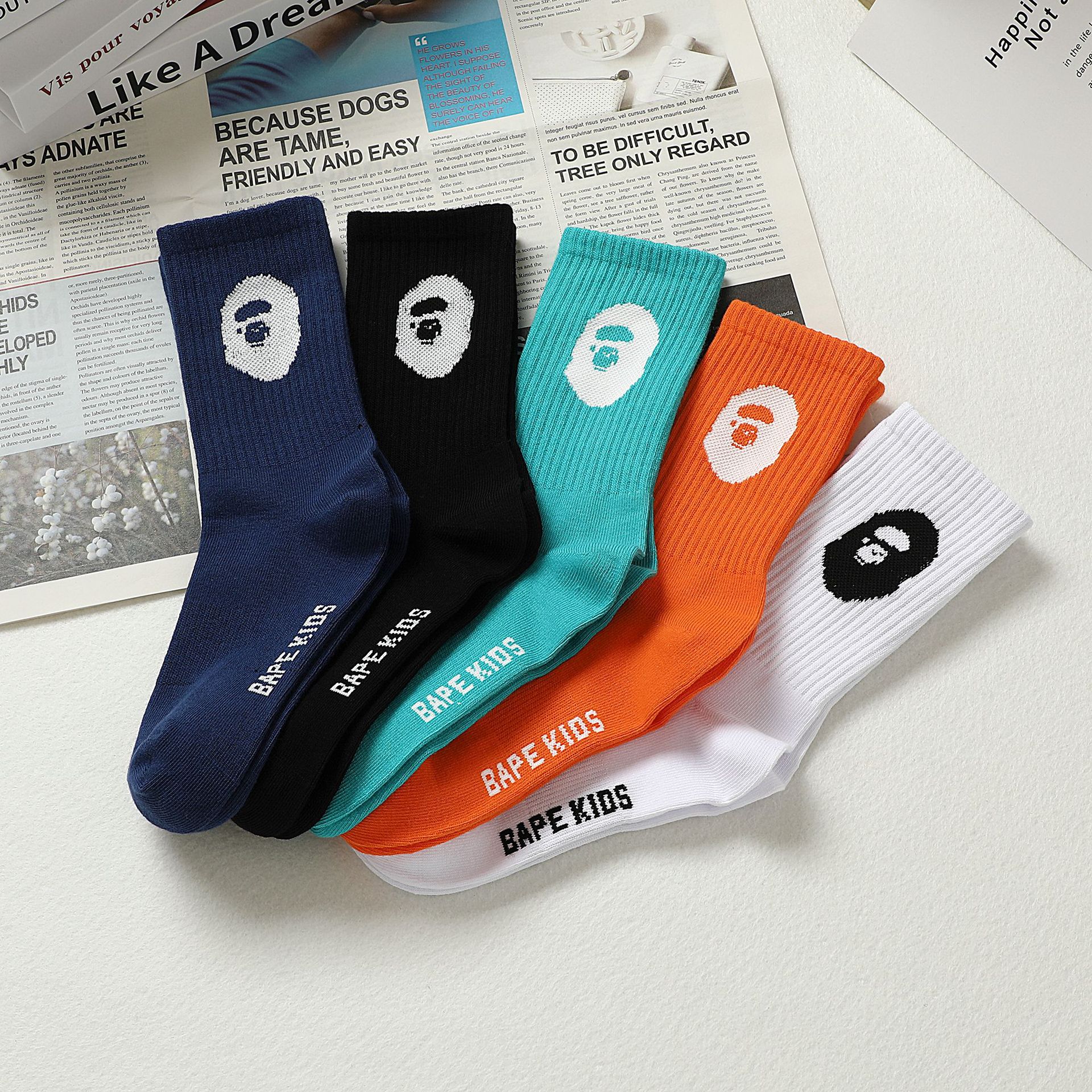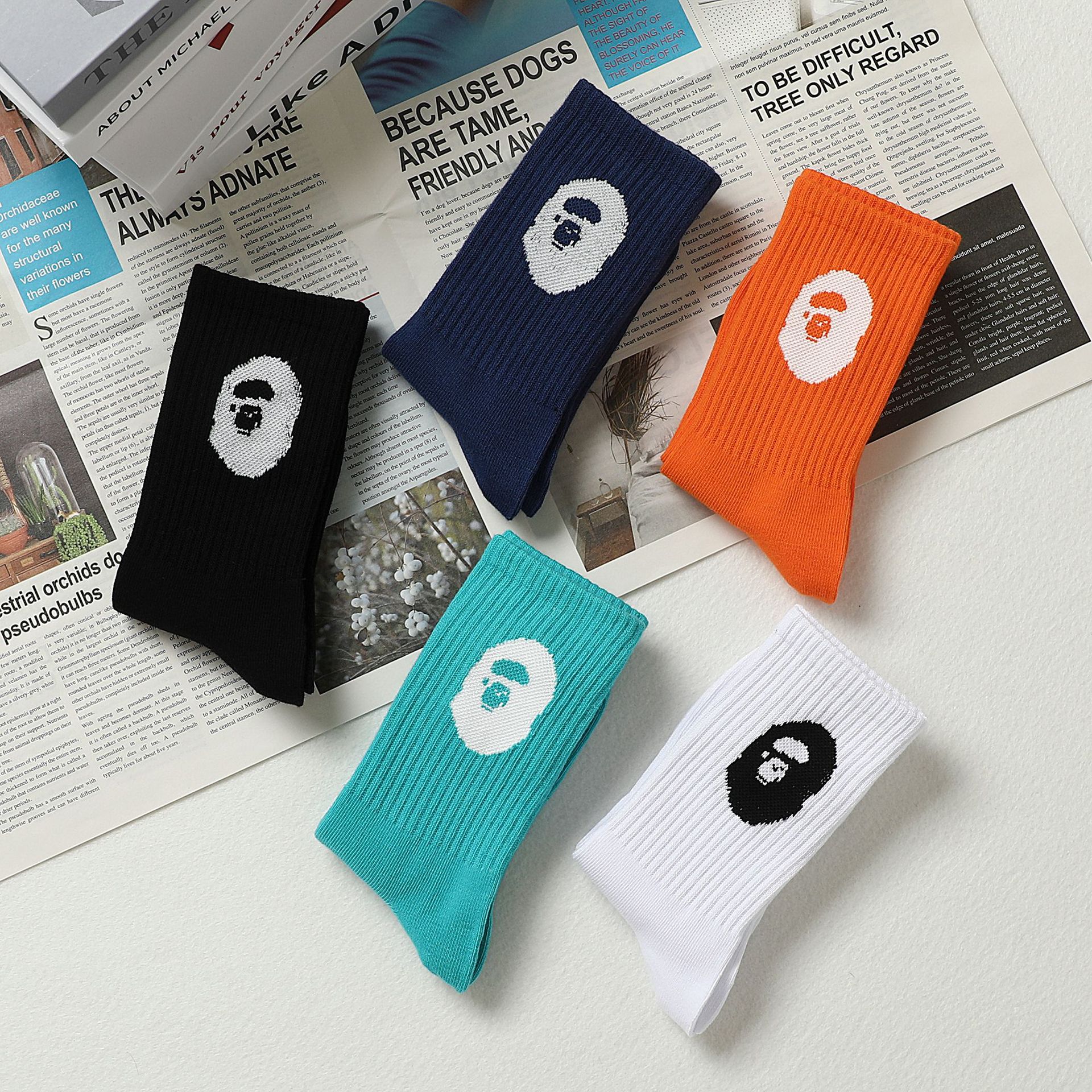 | nameOriginal | Monkey five-color socks 2024 new spring and summer four seasons large children's letter socks |