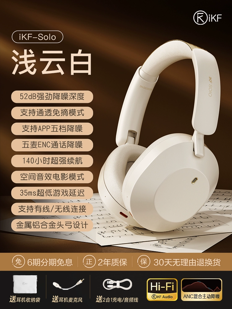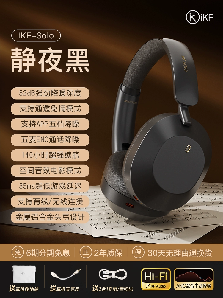 [Monster -grade noise reduction] IKF solo headset headset active noise reduction ANC wireless Bluetooth new noise