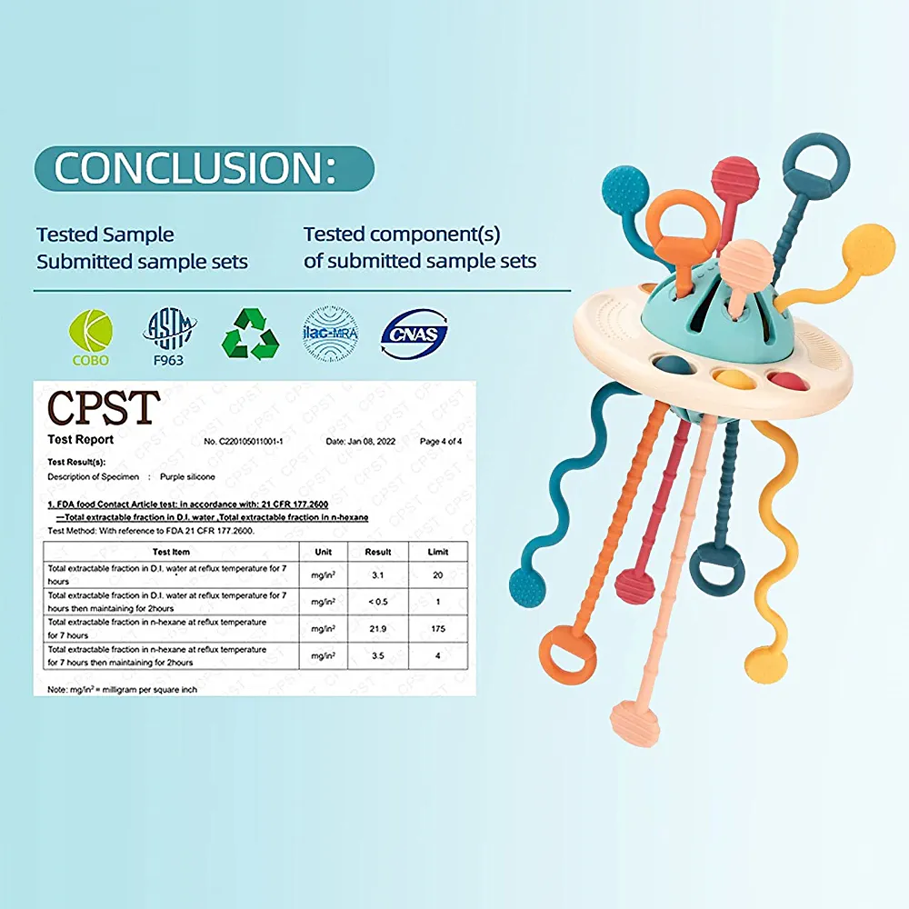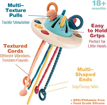 Baby Sensory Montessori Silicone Toy for 6-12 Months, Travel Pull String Toy for 12-18 Months, Developing Fine Motor Skill, Multi-Sensory Activity Toy for 1 Year Old Toys, Birthday Gift for Toddlers