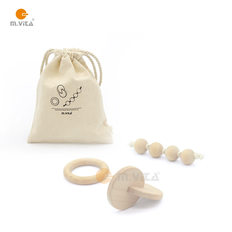 Montessori teaching aids Montessori education Montessori hand-eye coordination sensory beech wood three-piece set with two round interlocking beads