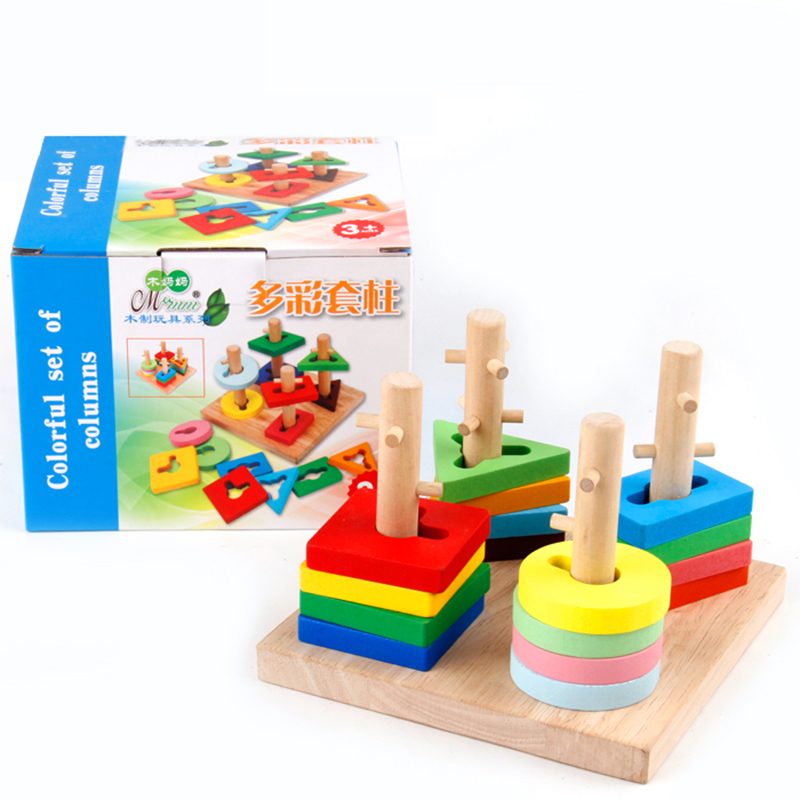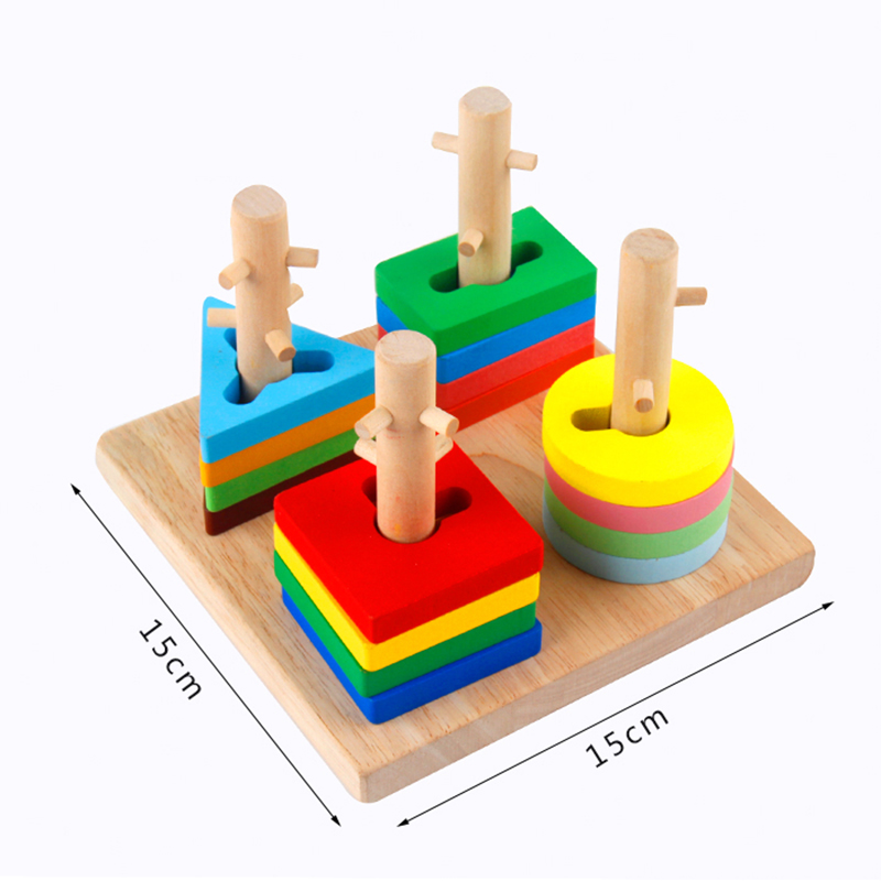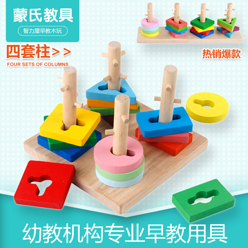 Montessori Wooden Teaching Aids Number Colorful Four Sets of Column Geometric Shape Matching Difficulty Upgraded Early Education Wooden Toy