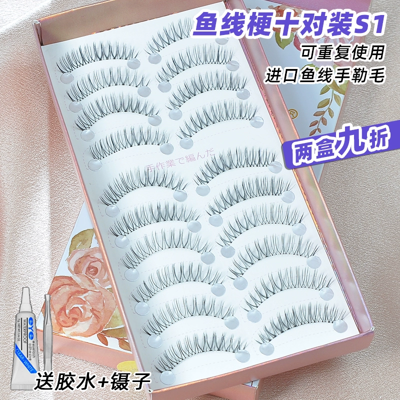 Moon Princess Fish Line Stem Sharpened False Eyelashes Complete S1 Ten Pairs Little Devil Transparent Stem Natural Bridal Makeup