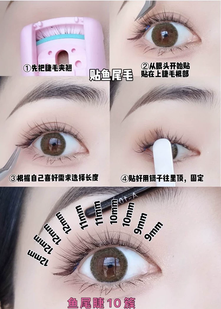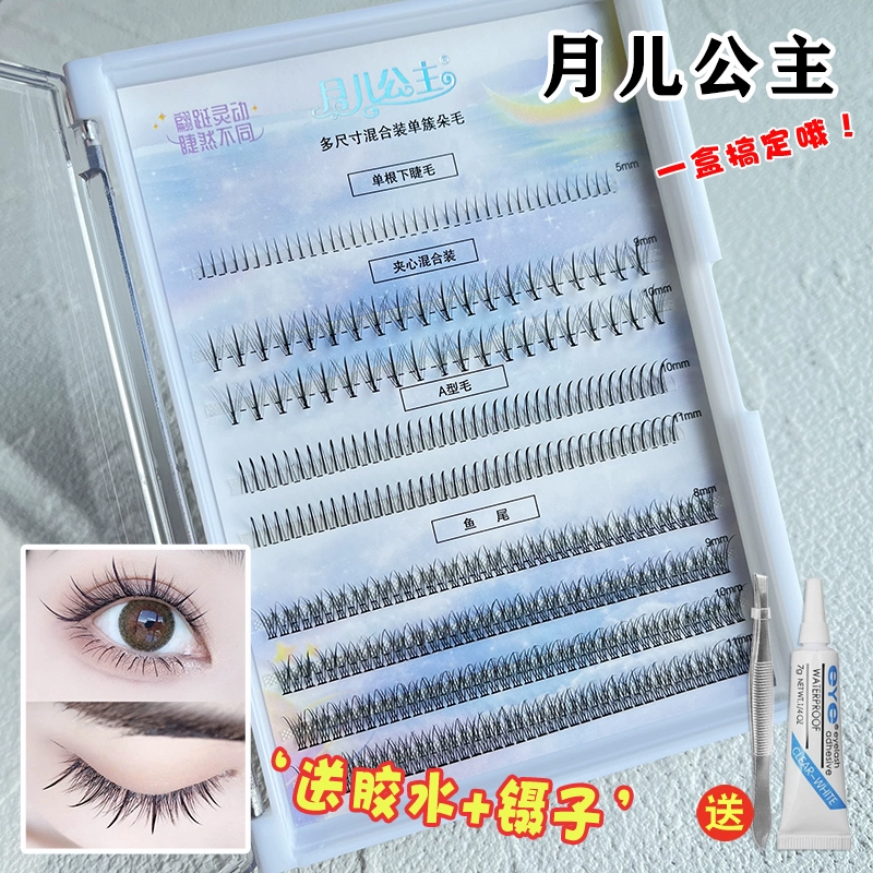 Moon Princess fishtail fairy hair mixed false eyelashes for women natural simulation single cluster A-type segmented grafting sandwich