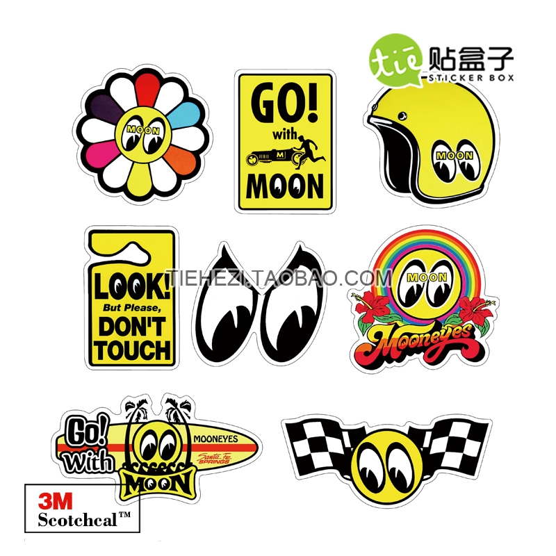 mooneyes motorcycle Harley modified JDM retro sticker waterproof 3M suitcase refrigerator notebook sticker
