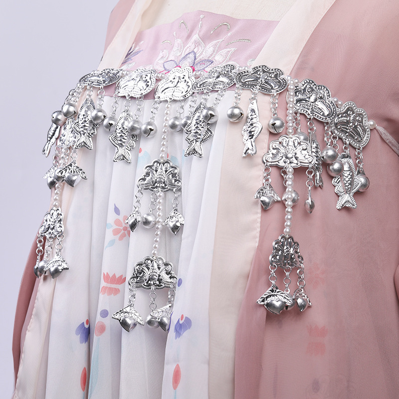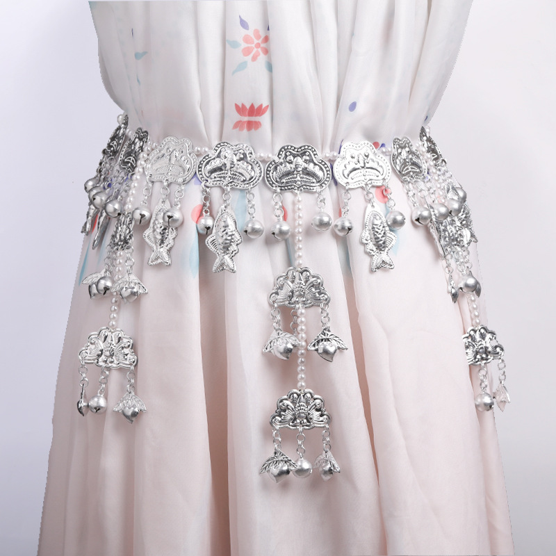 Moonlight Fish Bell Imitation Miao Silver Waist Chinese Clothing Waist Chain Bell Tassel Waist Wear Tang Style Girl Antique Waist Accessories