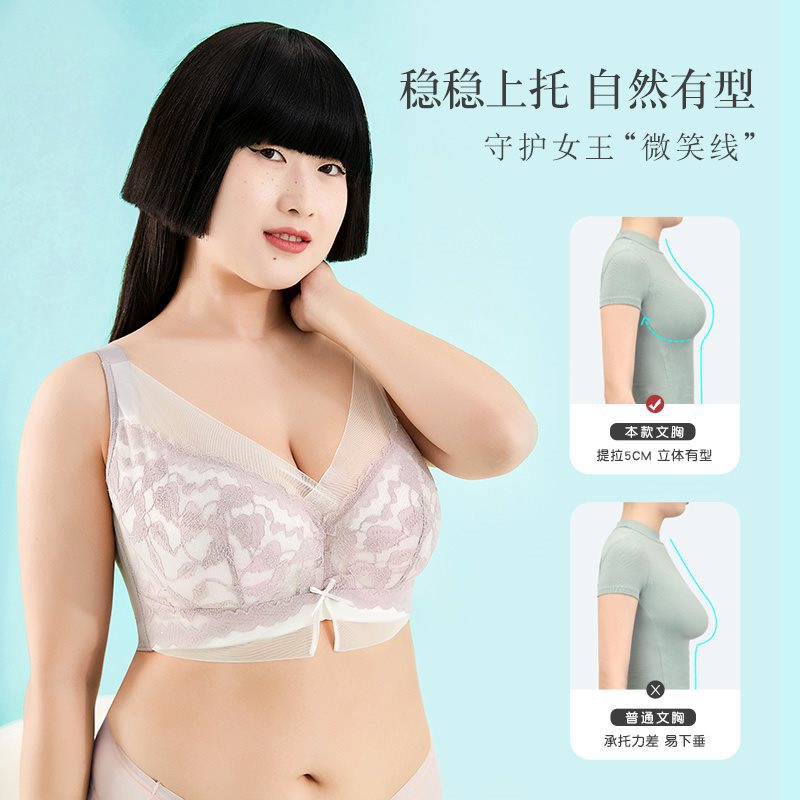 Moonlight Large Size Underwear Women’s Big Chest Small Thin Gather-up Collapsed Parammary Anti-sagging Upper-support Full Cup V-neck Bra D