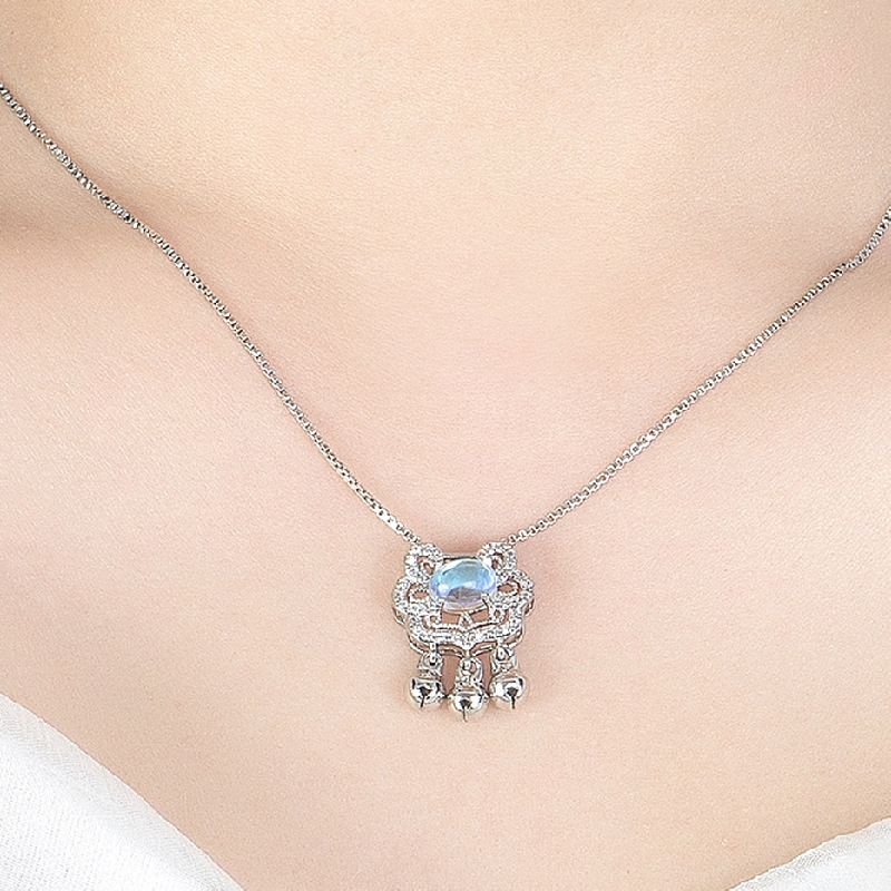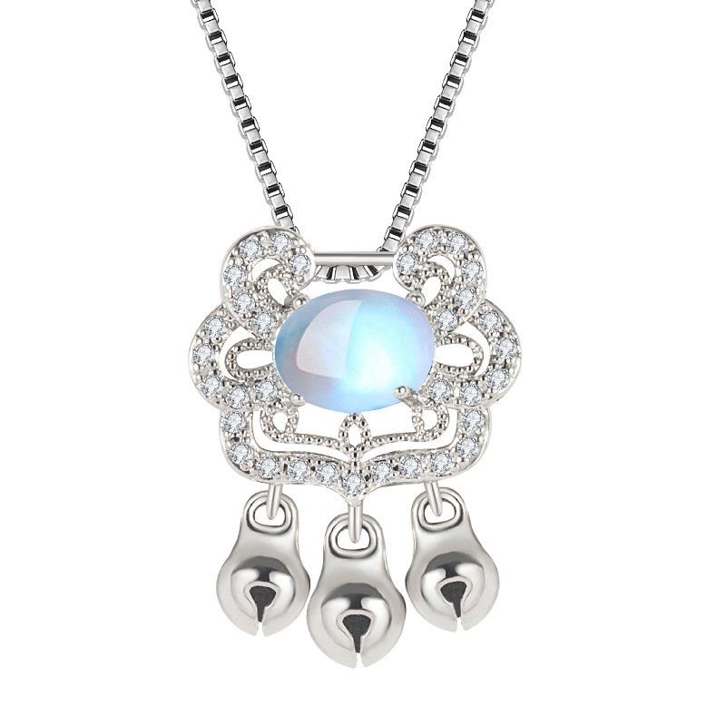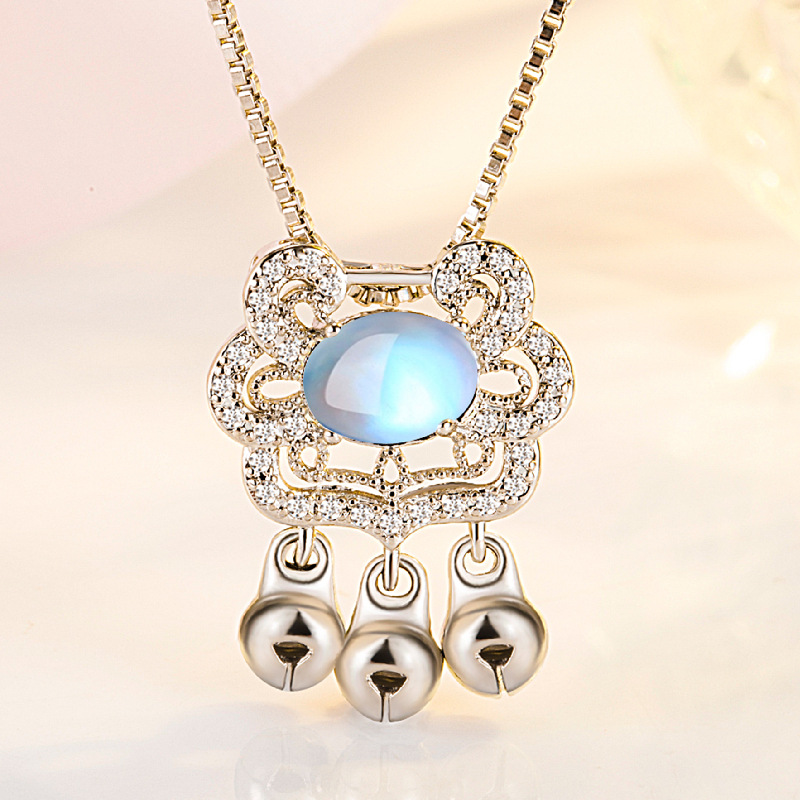 Moonstone Safe Long Life Lock Necklace Women’s Korean Style Bell Lock Pendant Ruyi Lock Design Sense Temperament Clavicle Chain