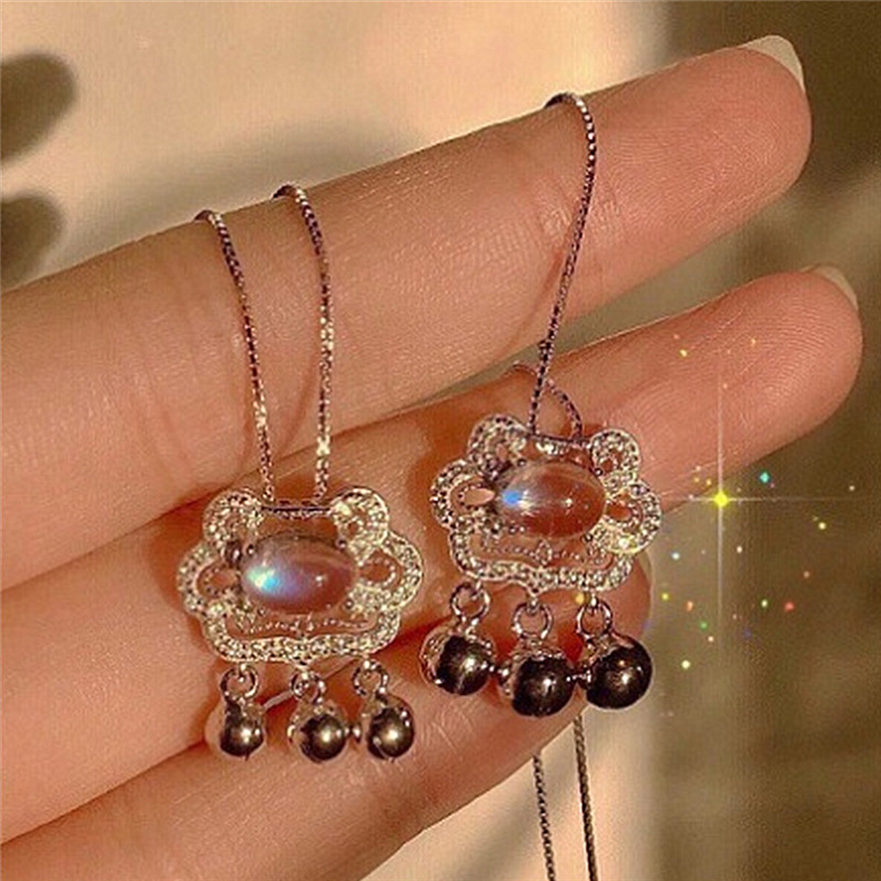 Moonstone Safe Long Life Lock Necklace Women's Korean Style Bell Lock Pendant Ruyi Lock Design Sense Temperament Clavicle Chain