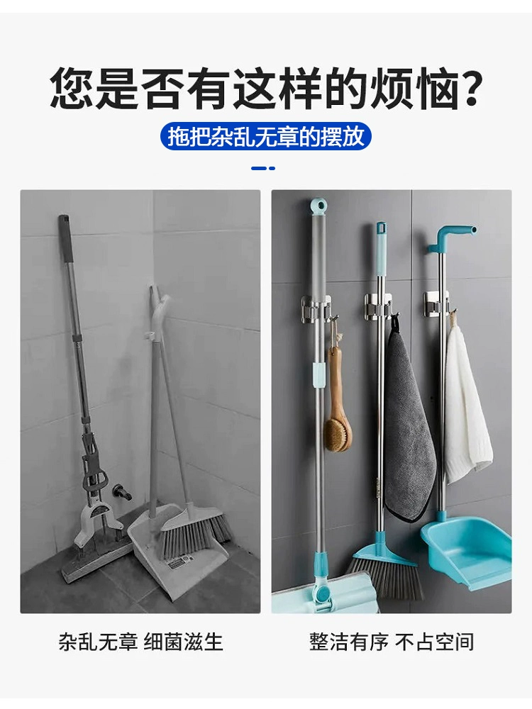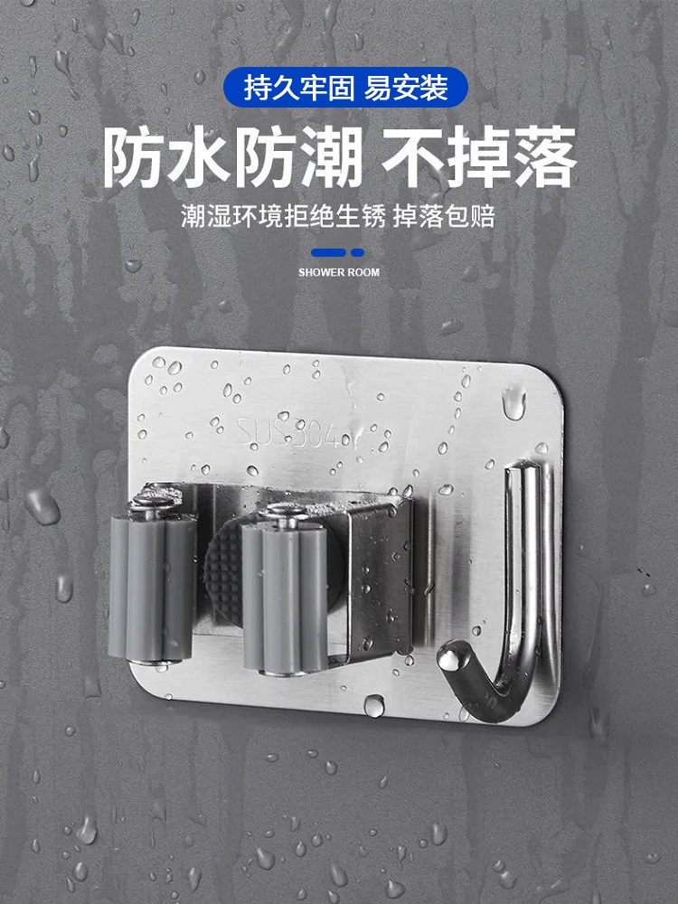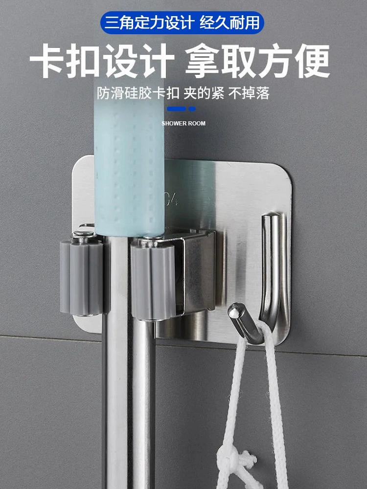| nameOriginal | Mop hook, punch-free bathroom storage artifact, wall-mounted broom hanger, fixed strong adhesive floor mop clip |