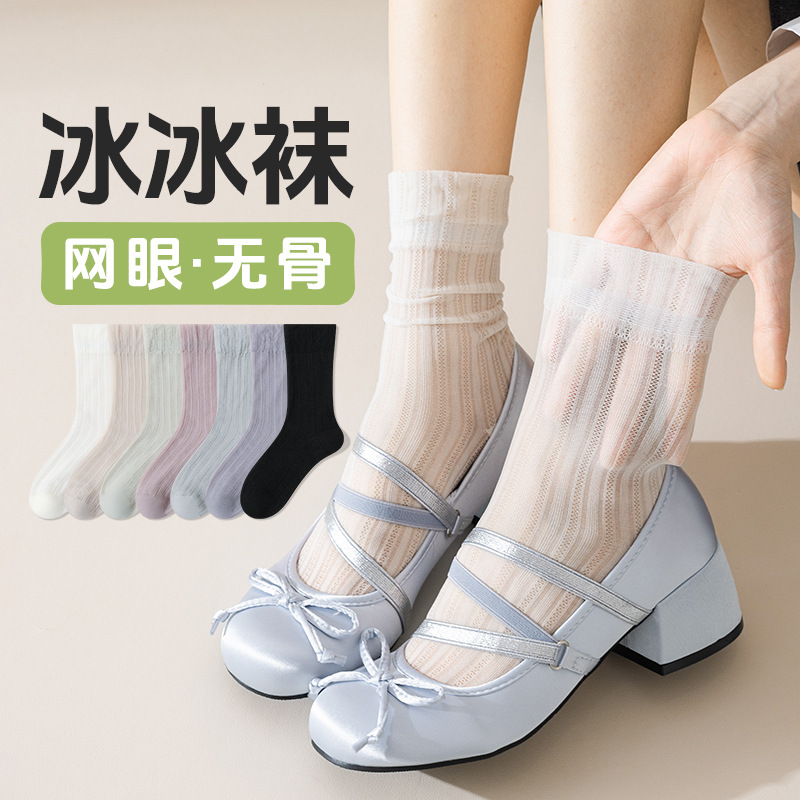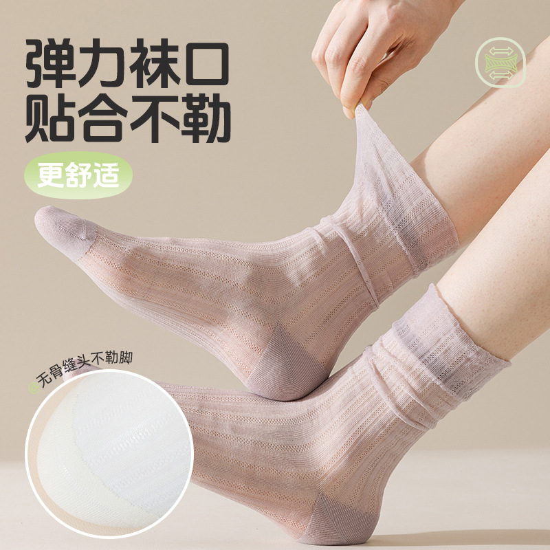 Morandi color fashion boneless ice socks thin mesh breathable pile socks skin-friendly comfortable elastic tube socks