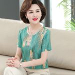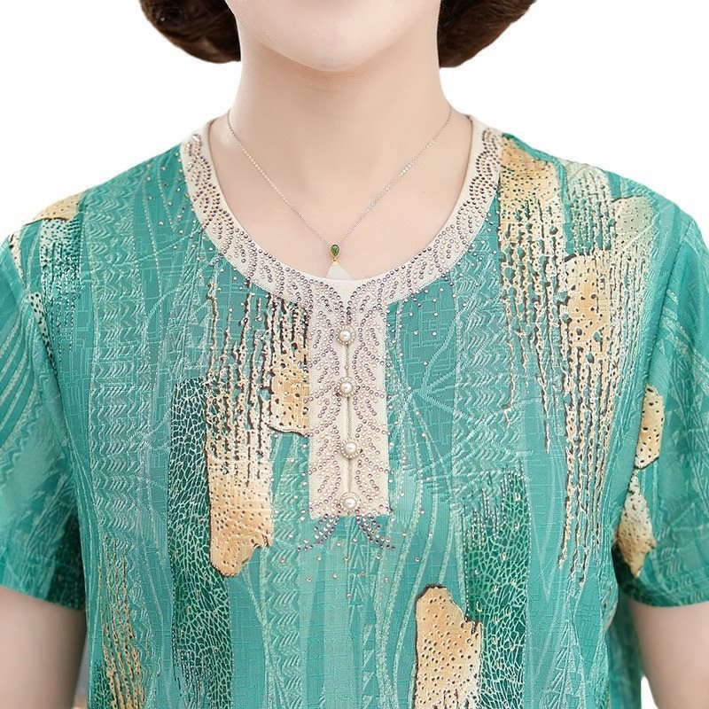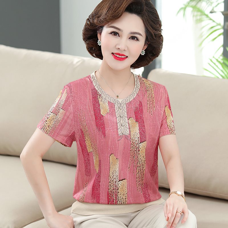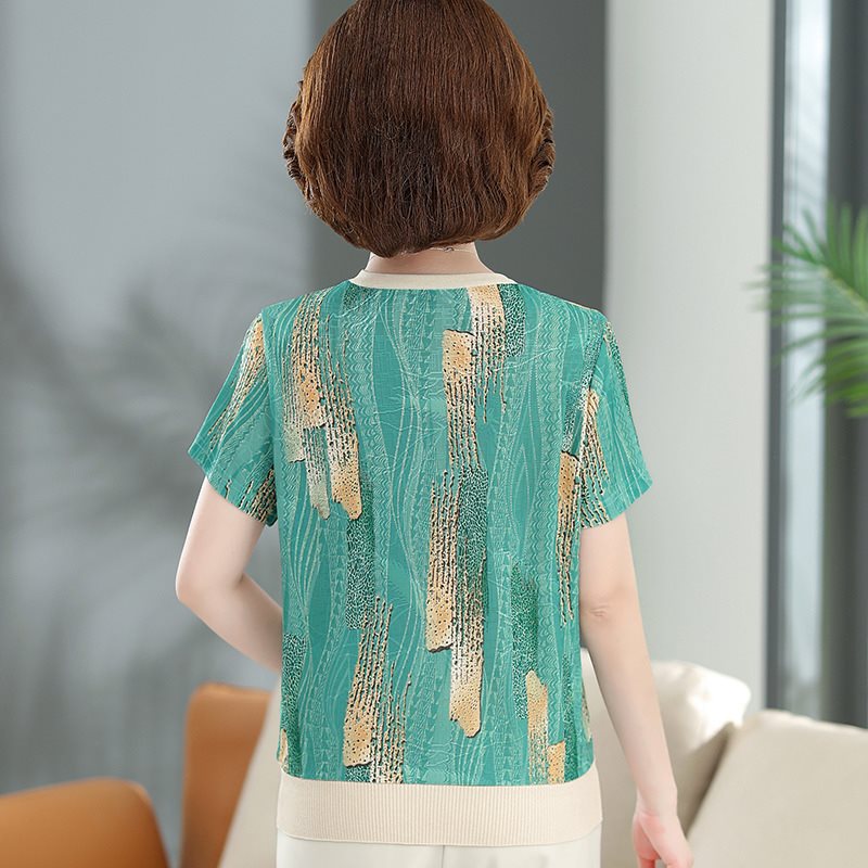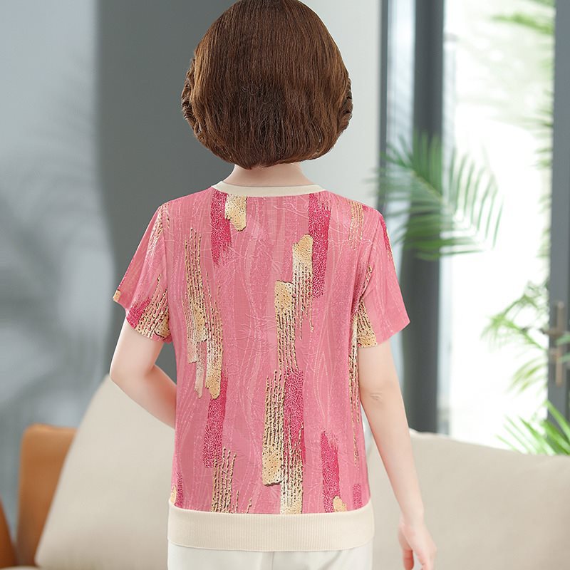 | nameOriginal | More than 50-year-old mother summer clothing ice silk short-sleeved T-shirt middle-aged and elderly women's clothing western style flower top grandma silk small shirt |