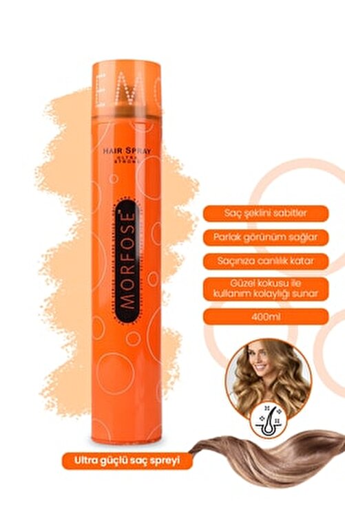 Morfose hair spray 400ml orange Thanks to its powerful formula enriched, it retains the shape of your hair in all seasons and weather conditions. Thanks to provitamin in its composition, it gives your hair vitality and shine. Easily removes from the hair with combing and brushing. Morfose ultra-hard hair spray 400 ml allows you to get a well-groomed and healthy look on your hair with its improved content. If you have thin stranded, easily deteriorating hair, or vice versa, you have thick stranded, wavy and frizzy hair, morphose hair spray will make it easier for your hair to take shape. Morfose fixes easily electrified hair by soothing. The protective components in it serve as a shield against external factors that wear out your hair, preventing your hair from tearing out.