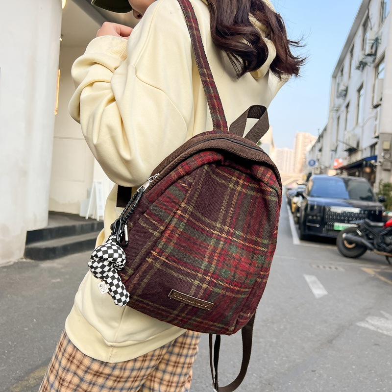 | nameOriginal | Mori girl Plaid backpack New ins retro plaid small backpack female Japanese school student schoolbag |