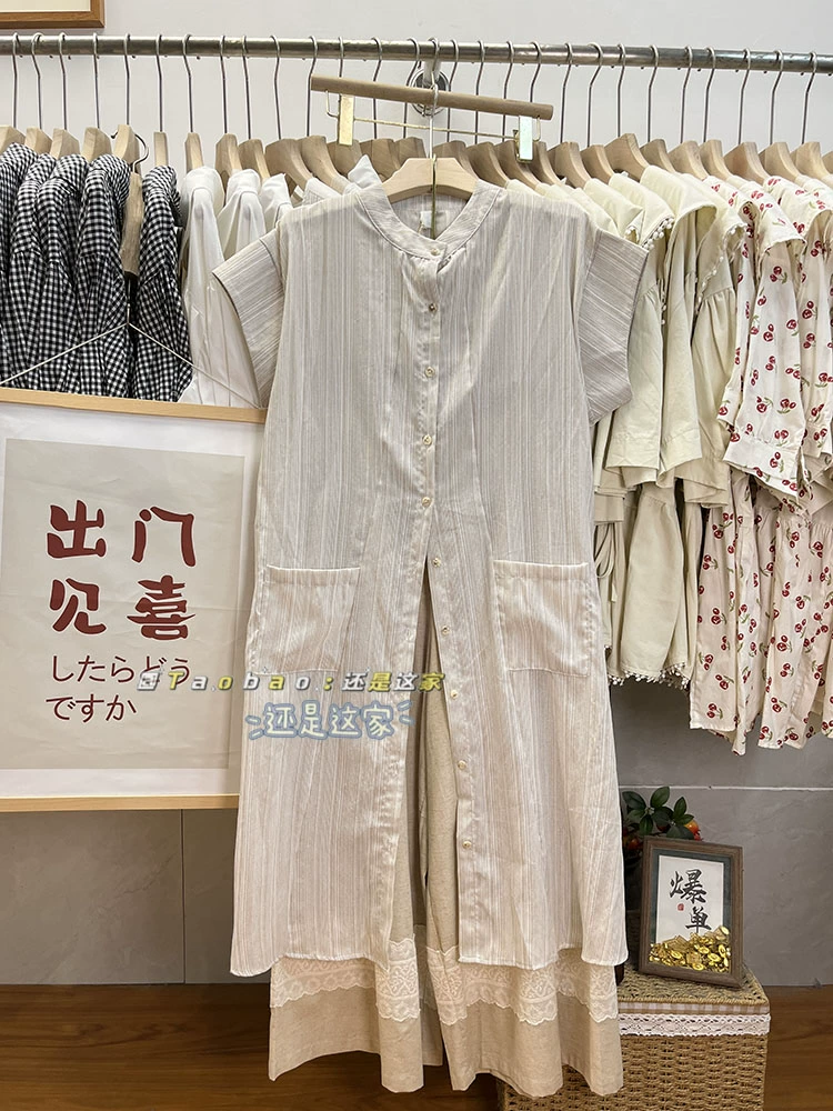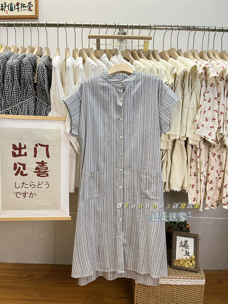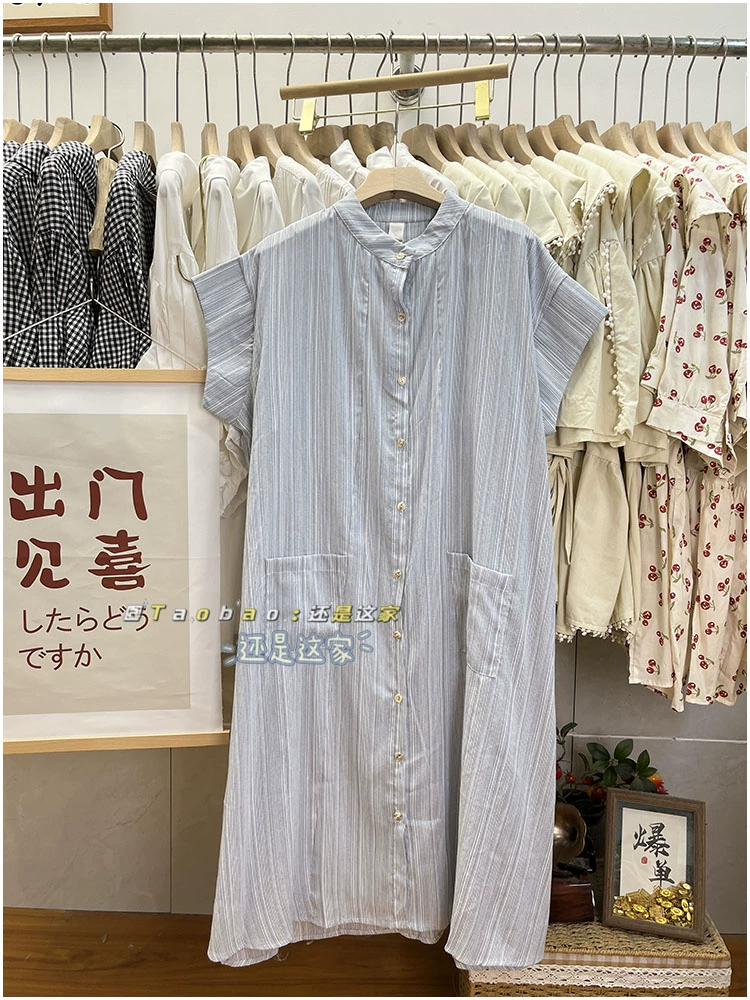 | nameOriginal | Mori girl stand collar single breasted loose shirt dress short sleeves |