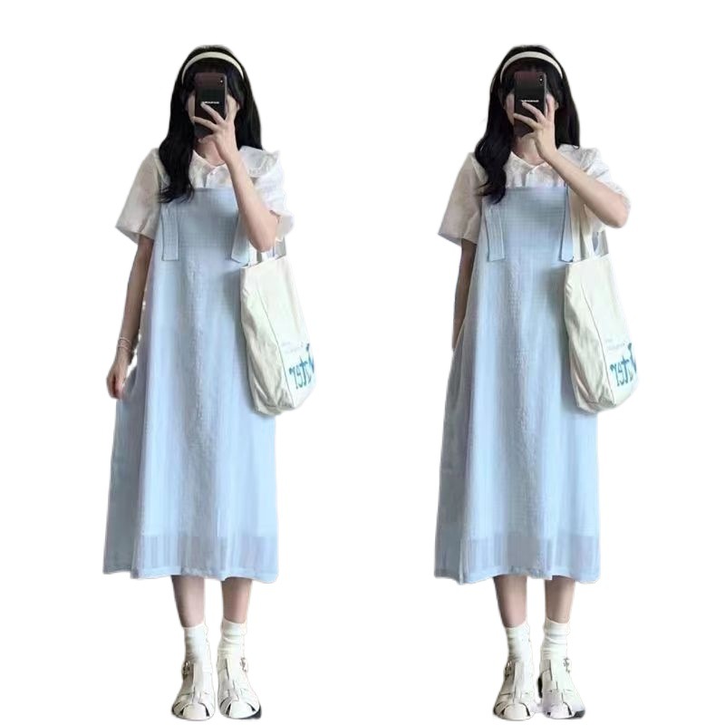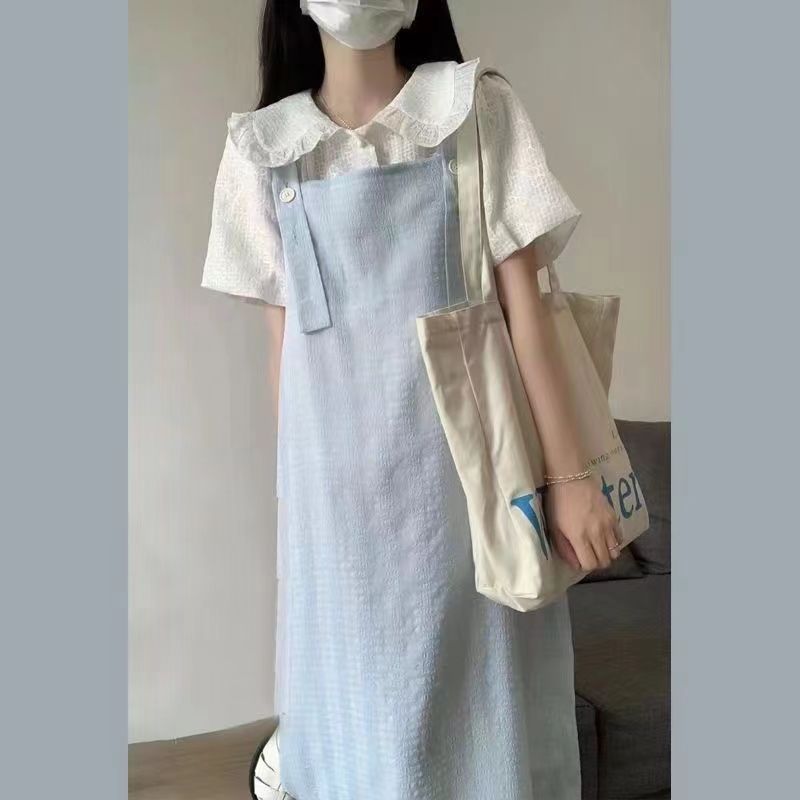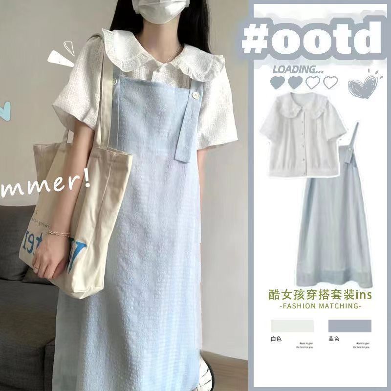 | nameOriginal | Mori Style First Love Dress Women's Summer New College Style Doll Collar Shirt Sweet Loose Strap dress Two-piece Set |
