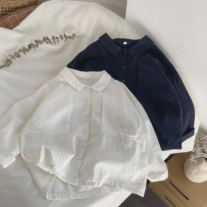 | nameOriginal | Mori Style Retro ~ Cotton and Linen Loose Korean Style Bat Sleeve Children's Shirt for Boys and Girls Casual Two-Pocket Trendy Top |