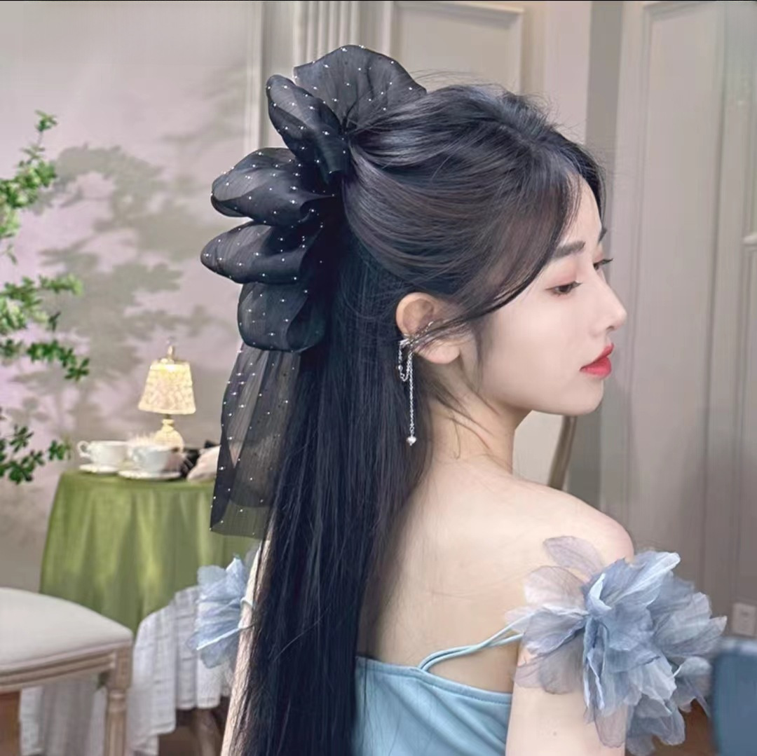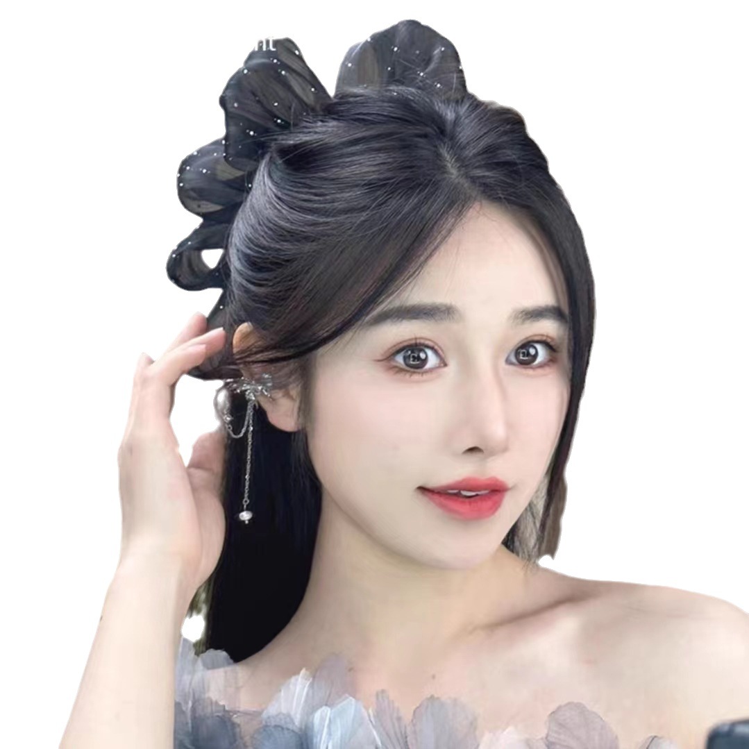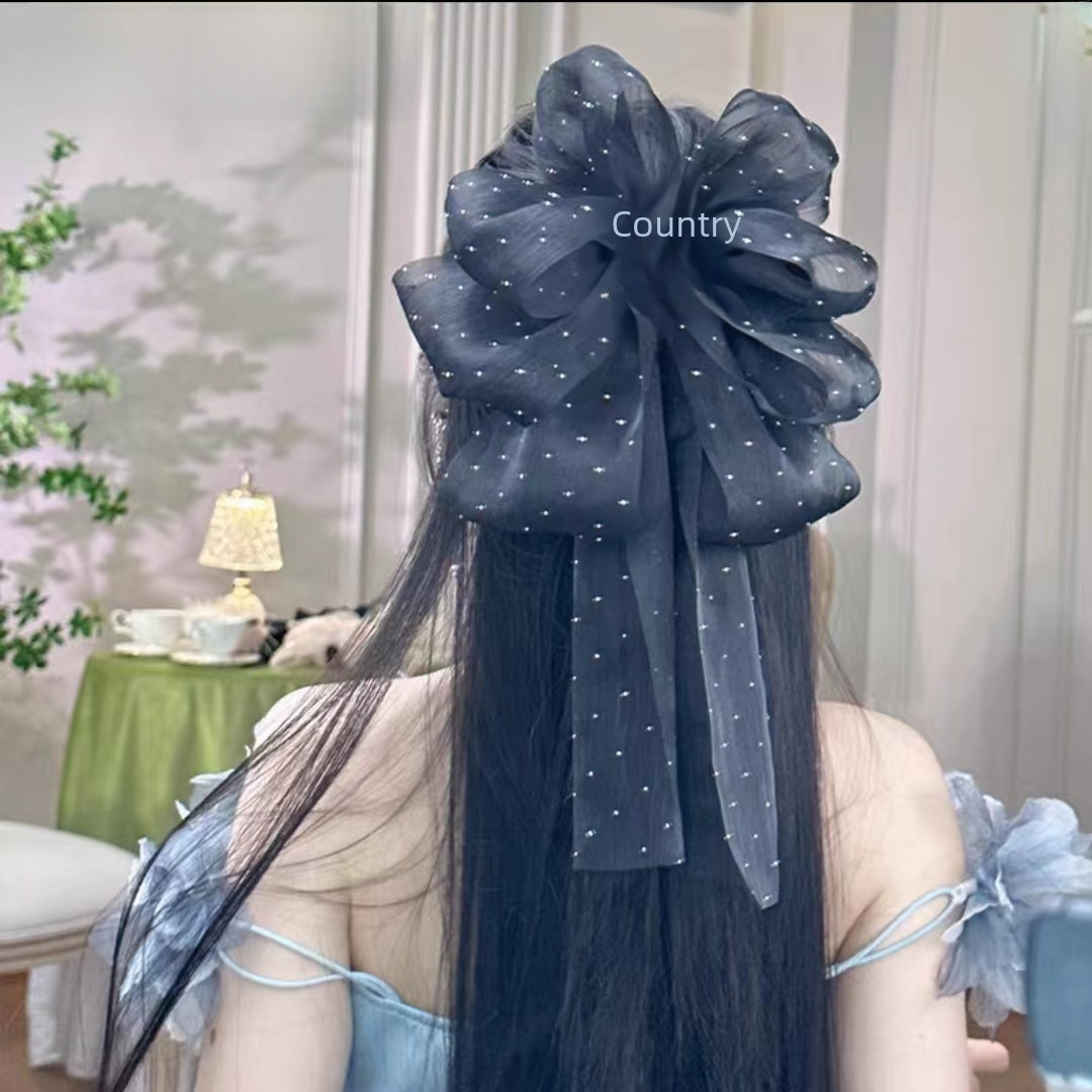 | nameOriginal | Mori Style Ribbon Tassel Mesh Bow Grab Clip Women's Back Head Half Tie Hair Clip Elegant Grab Clip Headwear |