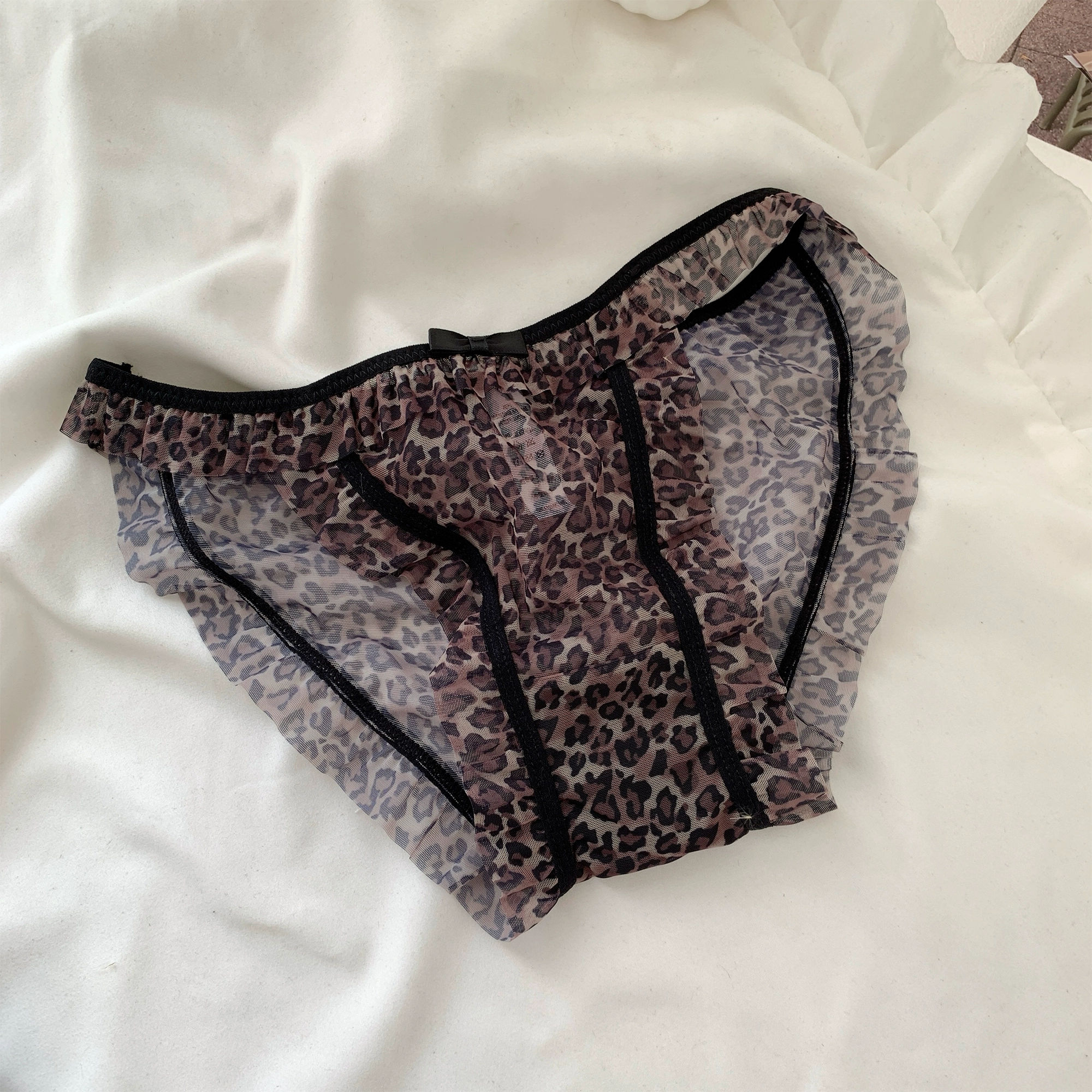 Morihi Kazuha leopard print high slit pure lust underwear women's summer thin breathable low-waist sexy women's briefs