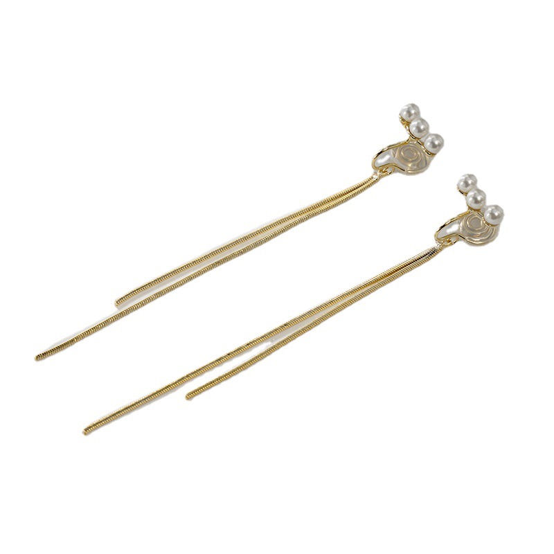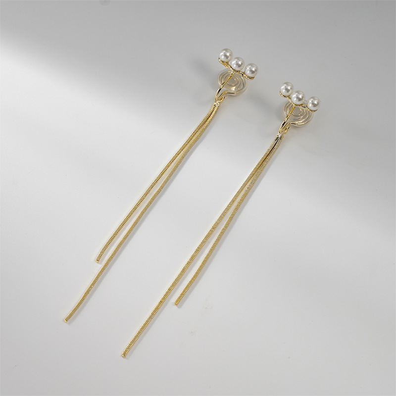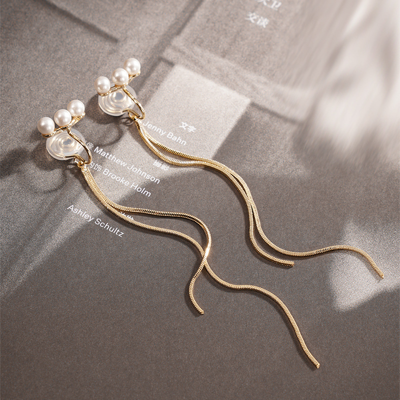 | nameOriginal | Mosquito Incense Plate Ear Clip High-grade Elegant Pearl Earrings Women's Long Tassel Earrings Simple Face Slim Super Fairy Earrings |