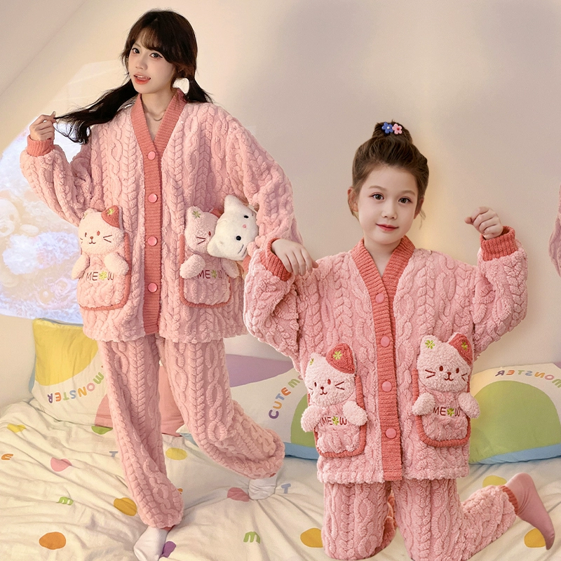 | nameOriginal | Mother and daughter winter cute flannel parent-child pajamas |