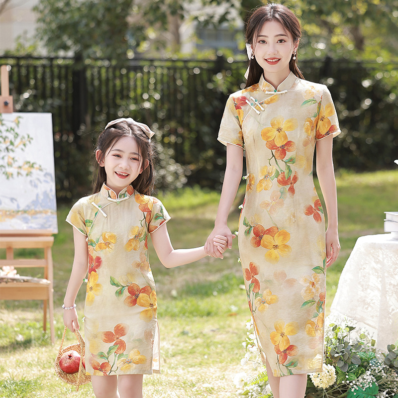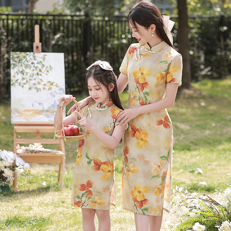 Mother-daughter Summer Parent-child Cheongsam 2024 New Improved Chinese Style dress Pastoral Mother-daughter Dress