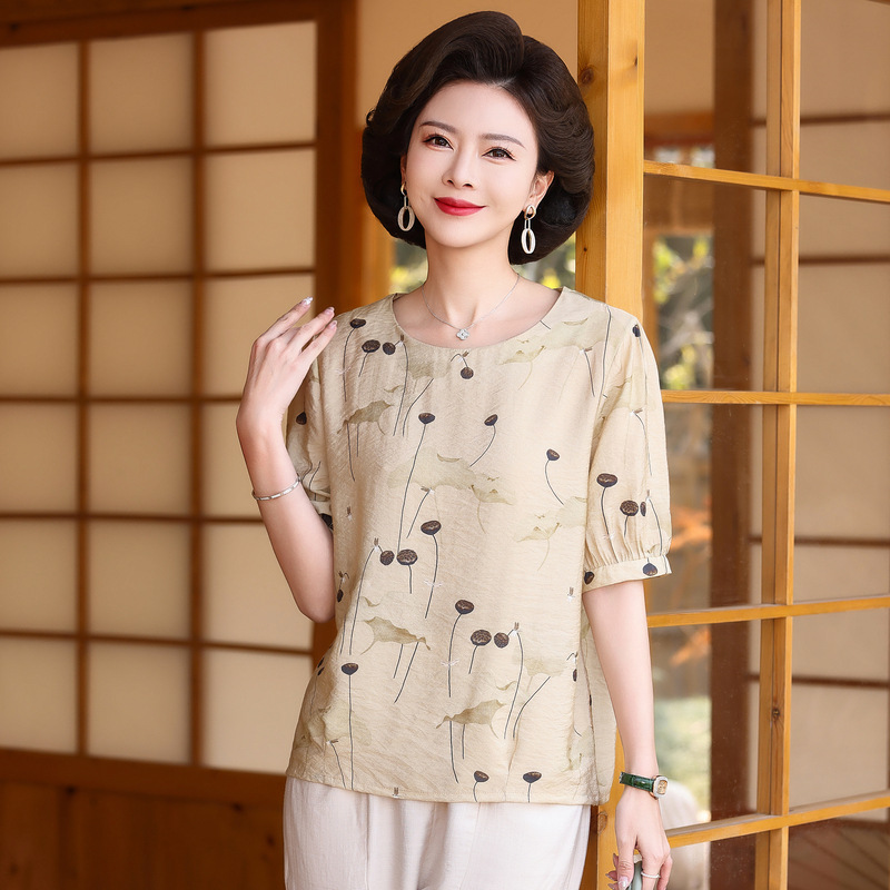 | nameOriginal | Mother Summer Cotton and Linen T-shirt 2024 New Thin Round Neck Middle-aged and Elderly Female Grandma Summer Western Style Short Sleeve Top |