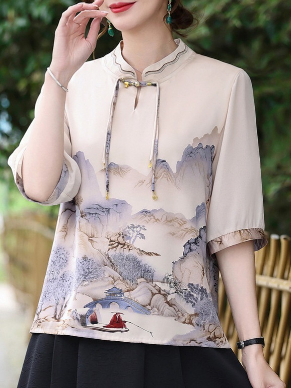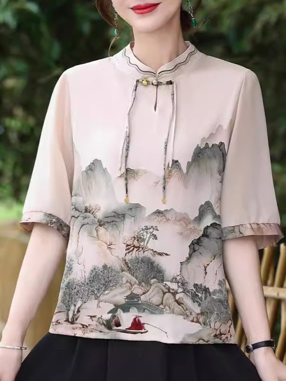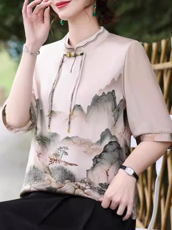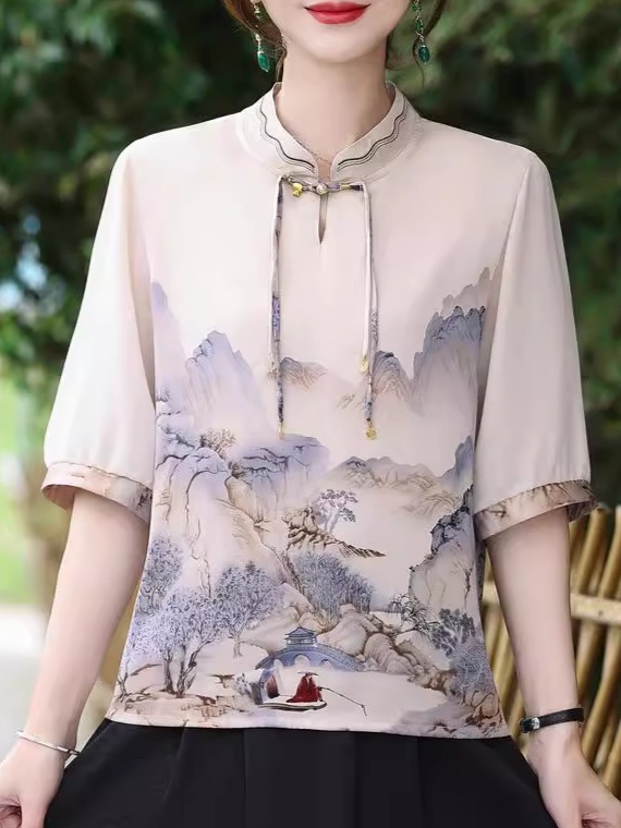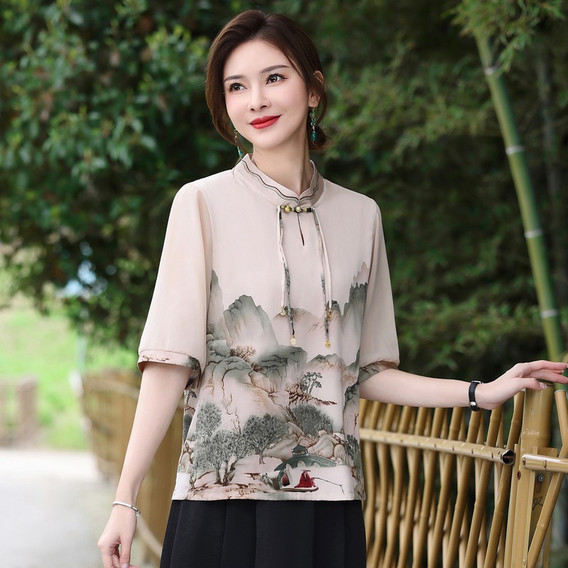 | nameOriginal | Mother summer new Chinese shirt 2024 summer foreign style short sleeve top middle-aged women's T-shirt national style small shirt. |