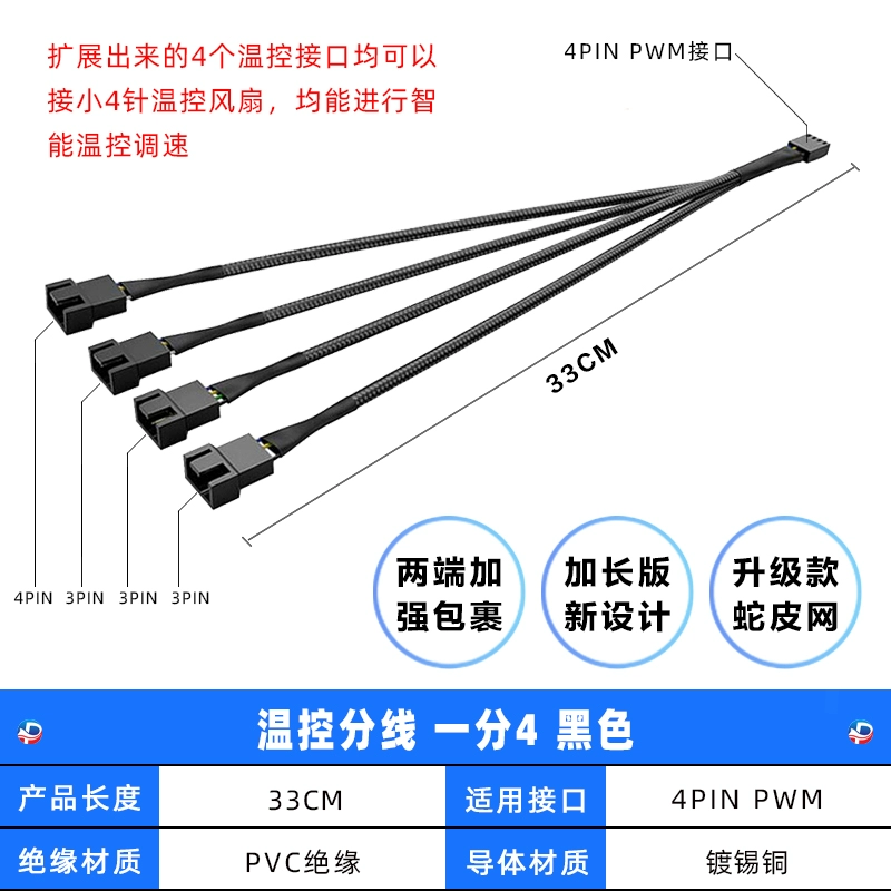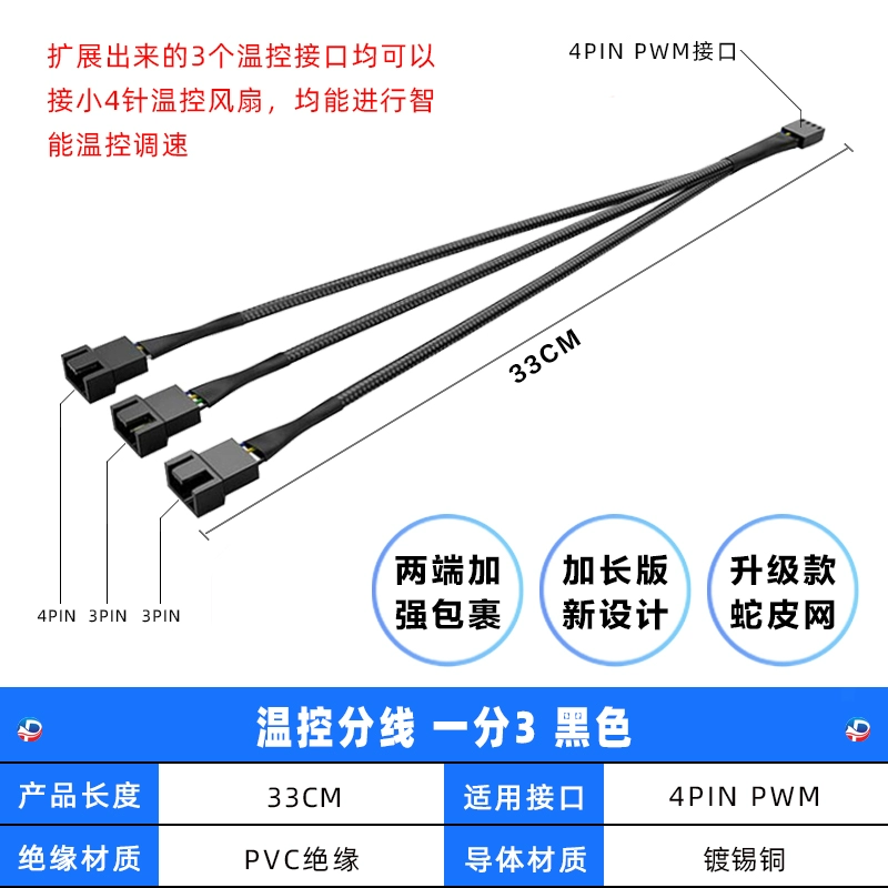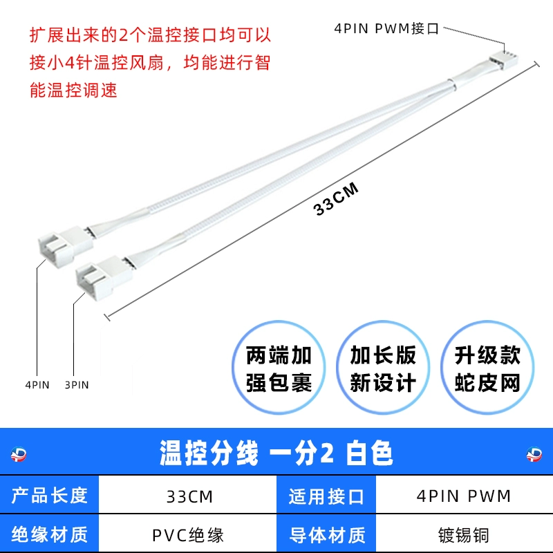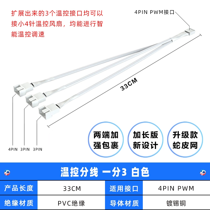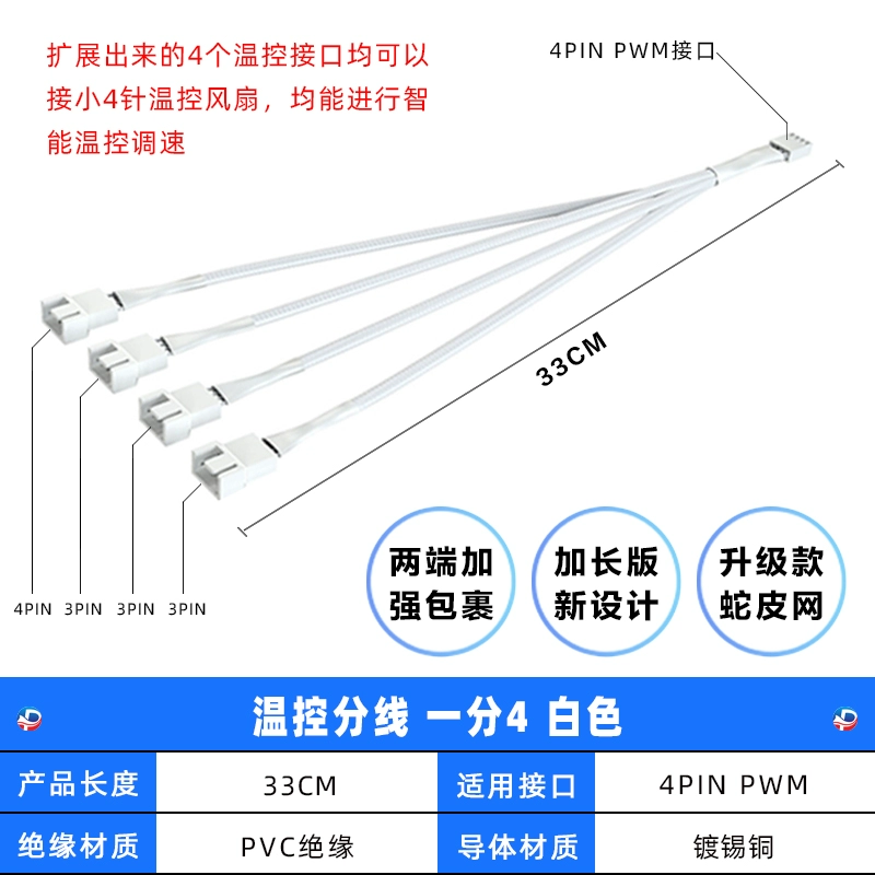 | nameOriginal | Motherboard 4-pin 1-to-3 adapter cable PWM temperature control one to four chassis fan hub 4-pin 1-to-2 white |