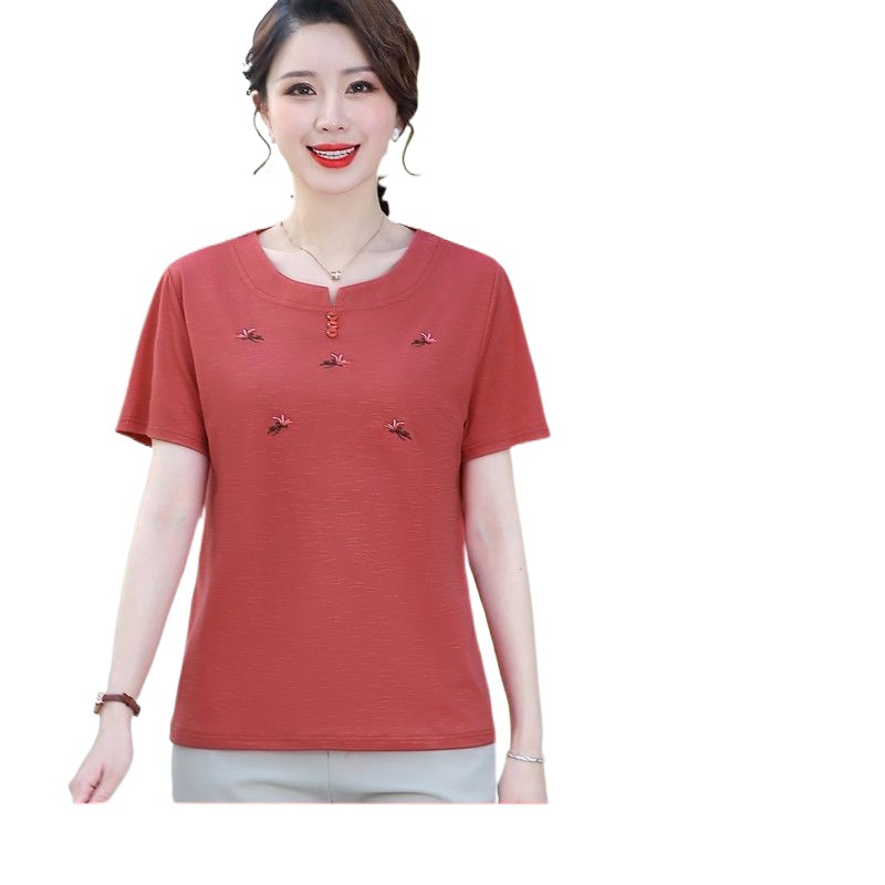 | nameOriginal | Mother's Clothing Summer Western Style Fashion Round Neck Shirt Middle-aged and Elderly plus size Women's Short-sleeved Slim-fit Thin Top |